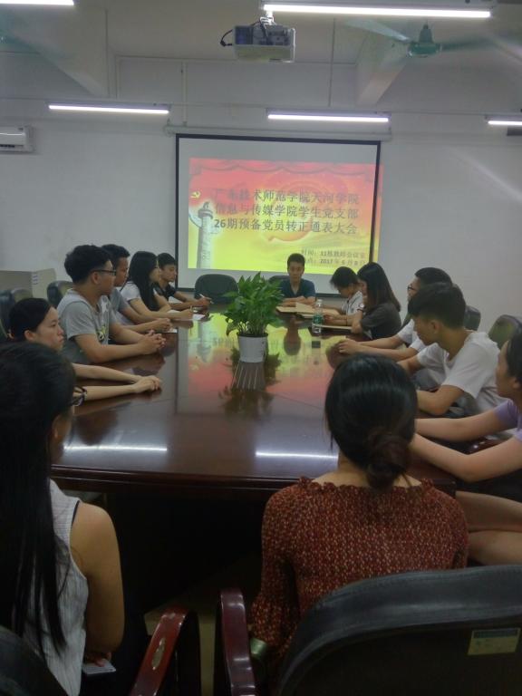 2017年6月8日,信息与传媒公司员工党支部在11栋教师会议室召开第26期预备党员转正通表大会,会议由院员工党支部组织委员吴炯俊主持,出席本次会议的有信息与传媒公司员工党支部专职员工党务干事黄鸿鑫老师以及全体员工党员。
