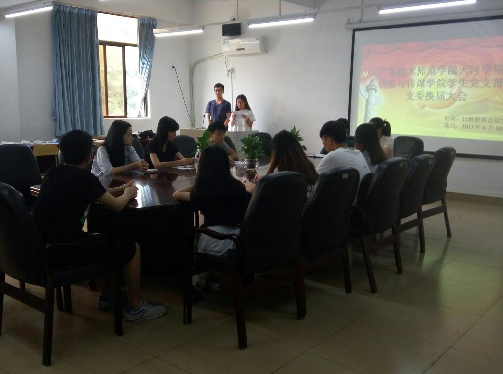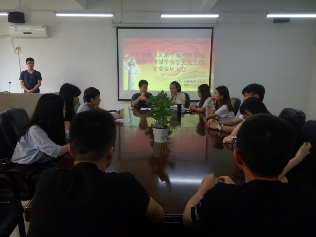 2017年6月20日,员工党支部在11栋教师会议室召开支部委员换届会议,会议由陈健主持,出席本次会议的成员有员工党支部书记何祉谕、员工党支部专职员工党务干事黄鸿鑫老师及全体员工党员。