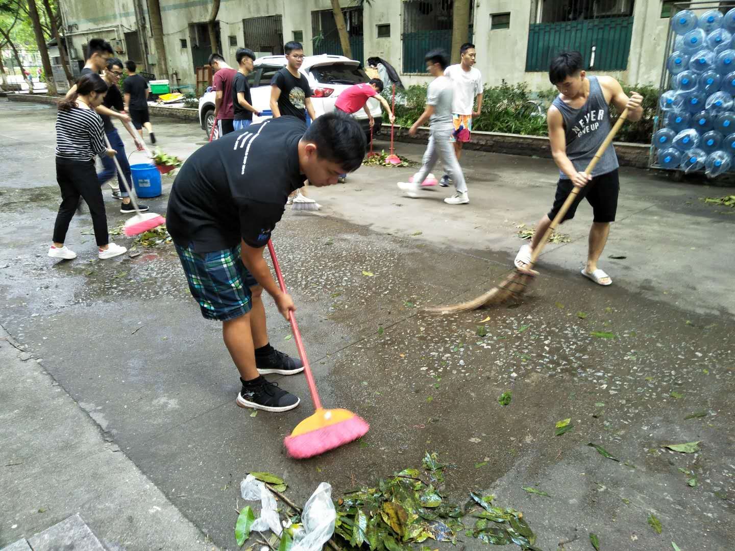 受强台风“山竹”影响,公司校道及部分教学场所,随处可见被风打乱的树枝、树叶以及泡沫片等垃圾杂物。为尽快恢复校园环境卫生,下午2:30,在公司党总支副书记刘亮、陈齐民辅导员的带领下,公司员工党支部及团总支员工会27名志愿者,分别在新10栋教学楼、9栋宿舍楼楼下道路开展了清扫环境志愿服务活动。志愿者们认真有序地清理道路及绿化带内的垃圾,并将清理出去的垃圾装入垃圾车。经过各位志愿者们的努力,道路环境恢复了往日的干净整洁。