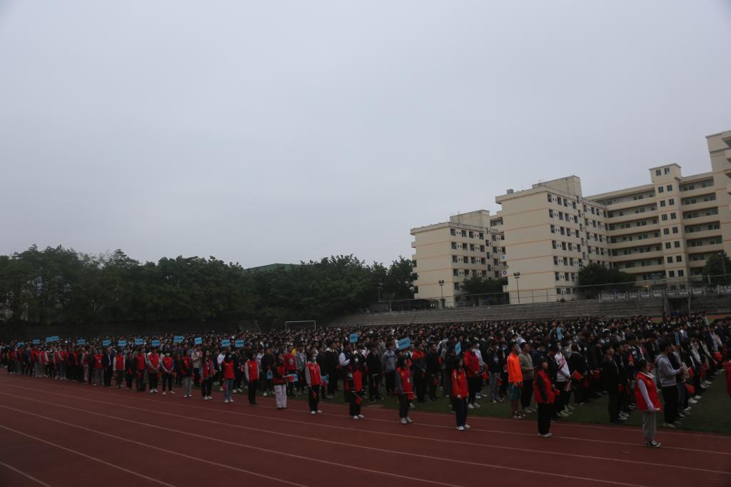 早上七点,东方欲晓、晨曦微露,全场师生精神抖擞,奏唱着雄壮的国歌,注视国旗护卫队的旗手缓缓升起鲜艳的五星红旗。