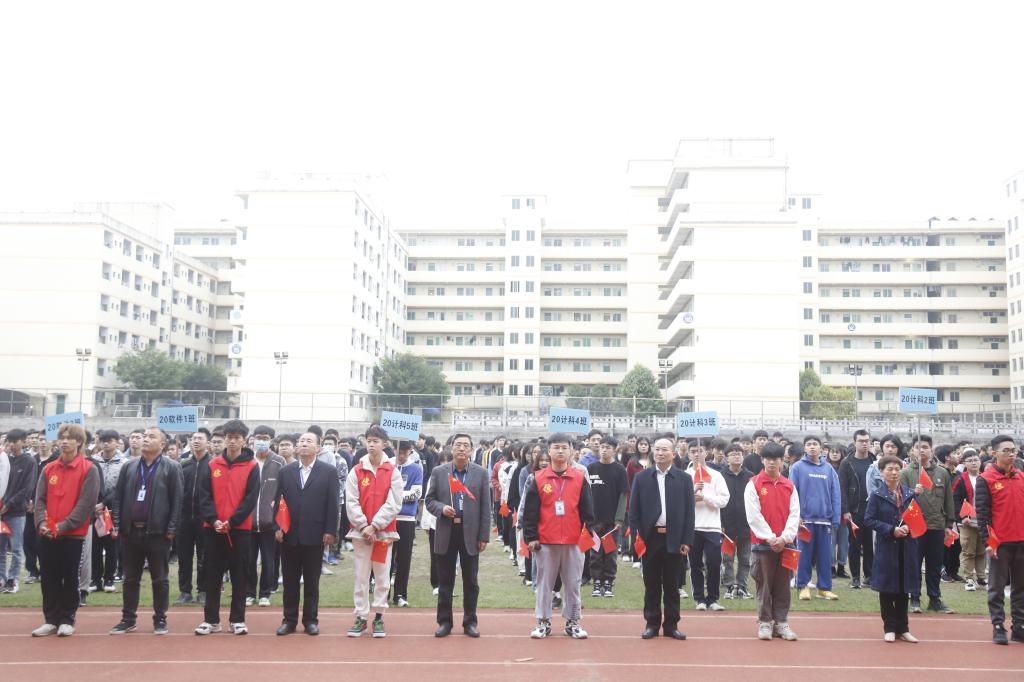 最后,现场全体师生一起深情地合唱《我和我的祖国》,用歌声表达对祖国的热爱和美好的祝愿。师生们纷纷表示,作为新时代教育工作者和青年学子,要厚植爱国主义情怀,以中华民族复兴为己任,努力展现新时代广州理工师生的责任与担当,做新时代的奋进者、开拓者、奉献者,为祖国的繁荣昌盛贡献自己的热情和力量。青年一代的理想、本领和担当,就是国家的前途和民族的希望。18软件1班王佳表示:“五星红旗已经在这片土地上飘扬了60余年,看着护卫队一步步把国旗护送到升旗杆下,缓缓升起,民族自豪感油然而生。”19计科班的韩祖富同学说:“作为青年老员工党员,我认为要把爱国奋斗精神发扬光大,坚定理想信念,厚植爱国情怀,加强品德修养,增长知识见识,增强综合素质,自觉将自身的前途命运同国家和民族的前途命运紧紧联系在一起,跟随党的脚步,勇于担当、奉献国家。”