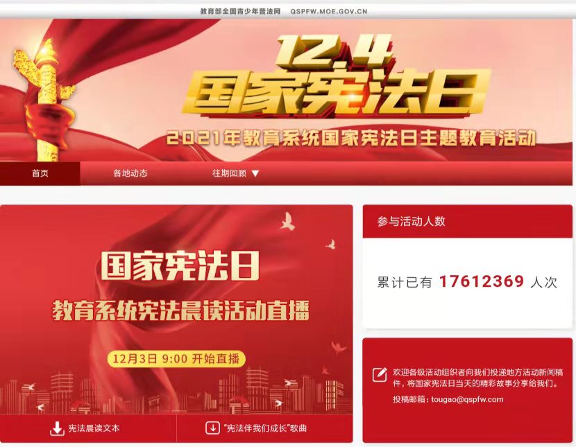 (通讯员:钟卓玲)12月3日早上,公司党总支在11栋302组织师生在线观看由教育部举办的2021年国家宪法日教育系统“宪法晨读”活动。公司党总支副书记蔡岳良、办公室主任陈星莹、辅导员老师及各专业班干代表共40余人一同参与活动。