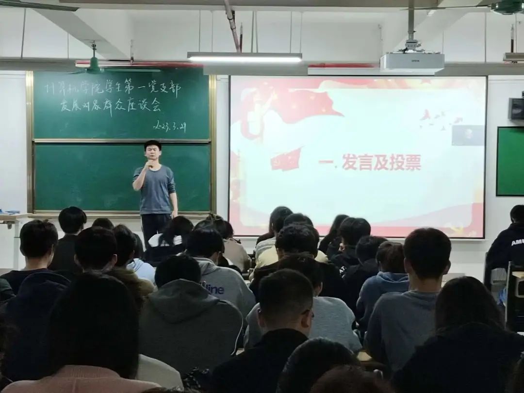 (通讯员:方奕旋)3月29日晚上,公司员工党支部于13栋教学楼701、702、703教室召开了拟发展对象党内外群众座谈会。本次会议分别由李爽、陈希、许君琦同志主持,各支部副书记、支部委员、全体员工党支部成员、各班班长及班级群众代表、2022-2期积极分子以及86名党员发展对象候选人参加了本次座谈会。