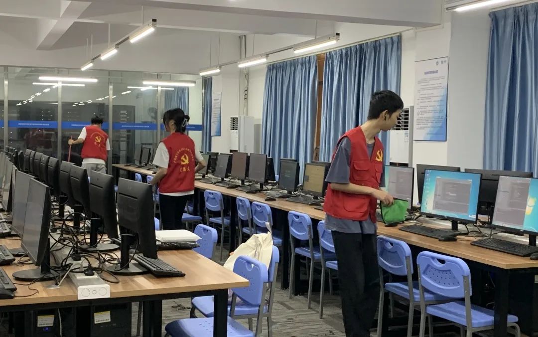 傍晚六点,志愿者们准时到达11栋信息楼一楼,有序领取清洁工具。随后,志愿者们听从安排,带着清洁工具对实验室进行全方位的卫生清洁。