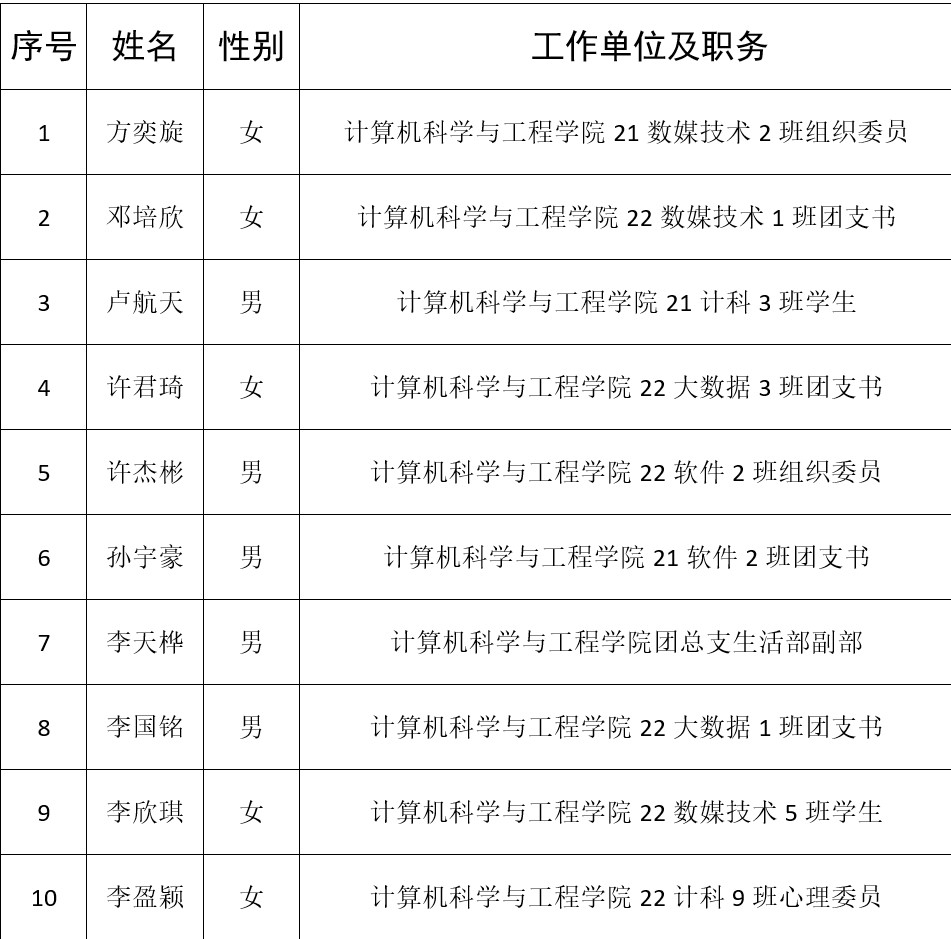 共青团太阳成集团tyc122ccvip第一次代表大会代表候选人初步人选公示名单(二)