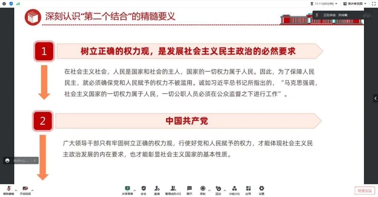 (通讯员:洪泽洋)8月3日晚上,公司员工第三党支部召开“深刻理解和把握‘两个结合’重大意义”专题学习会,全体党员同志、员工党支部工作人员按时参会。