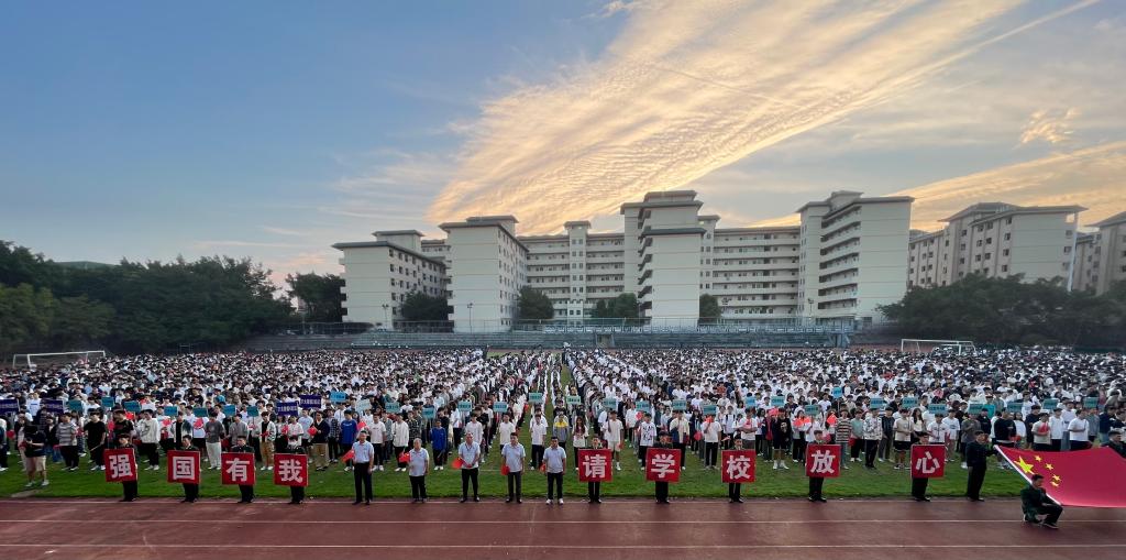 (通讯员:陈星莹)10月16日早上,太阳成集团tyc122ccvip在公司广州校区大操场举行“我为祖国升国旗”活动,把庄重的升国旗仪式作为公司新学年的“思政第一课”。公司工作部、评建办、广州校区五千五百多名师生齐聚操场,太阳成集团tyc122ccvip惠州校区一千三百多名师生通过在线形式,共同参与升旗仪式。
