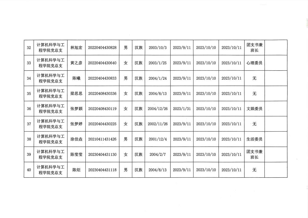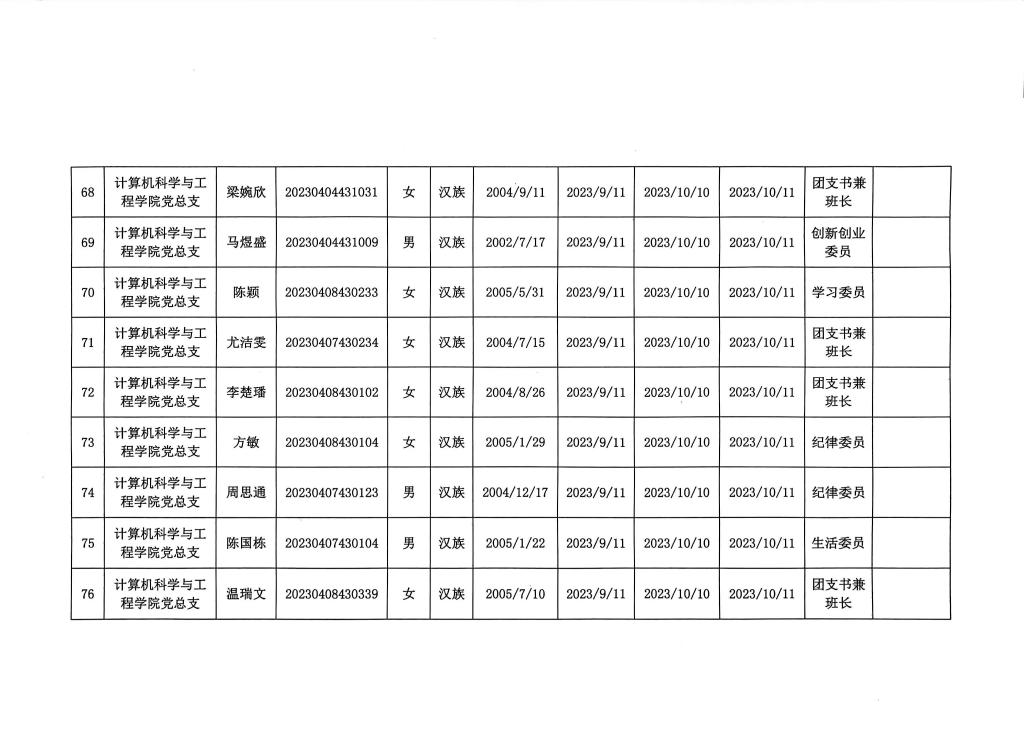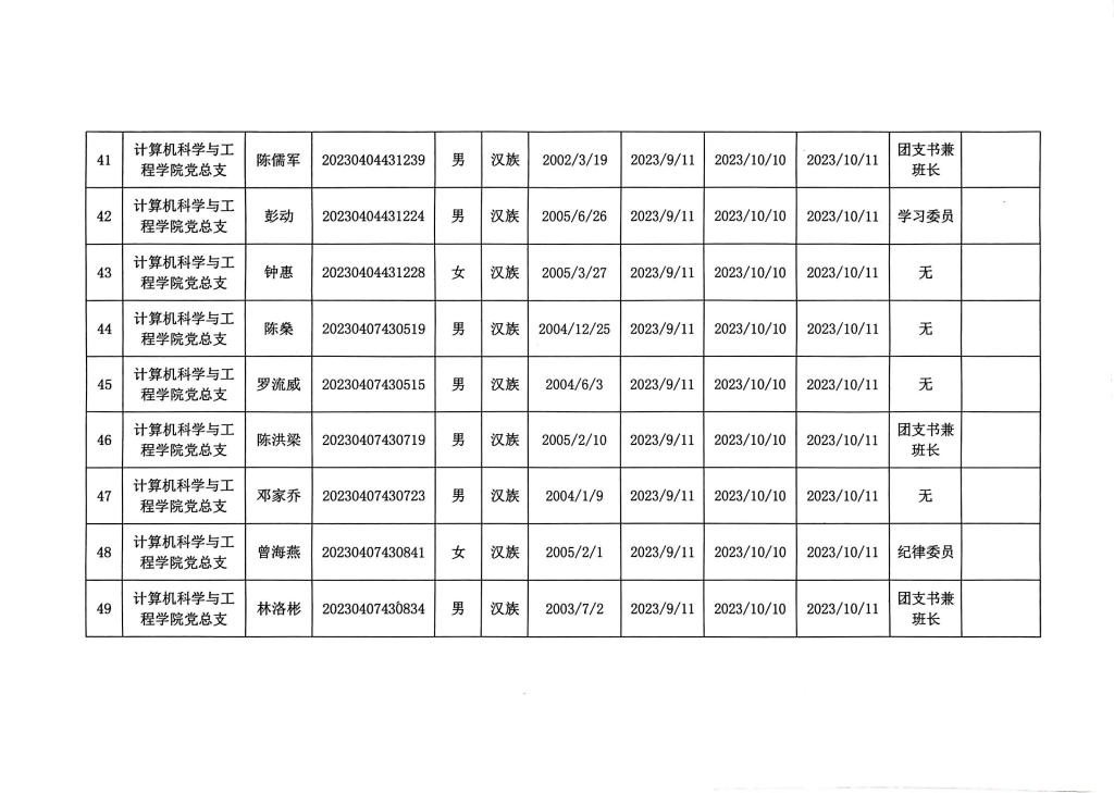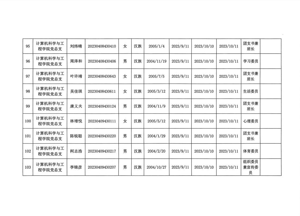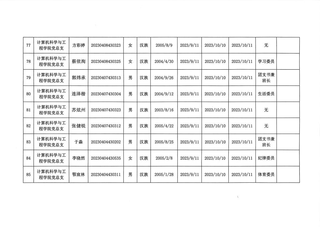 在听取培养联系人、党员和群众意见的基础上,经支部大会、支委会研究决定,拟确定李树一等124名同志为入党积极分子,具体情况公示如下图。如有异议者,请自本公示之日起,通过电话、电子邮件或书面形式,向党支部或党总支办公室反映入党积极分子在理想信念、政治立场、思想作风、工作表现、群众观念、廉洁自律等方面的情况和问题,反映情况要实事求是并署真实姓名。党支部和党总支将对反映问题严格保密,对反映问题进行调查核实,弄清事实真相,并以适当方式向反映人反馈。