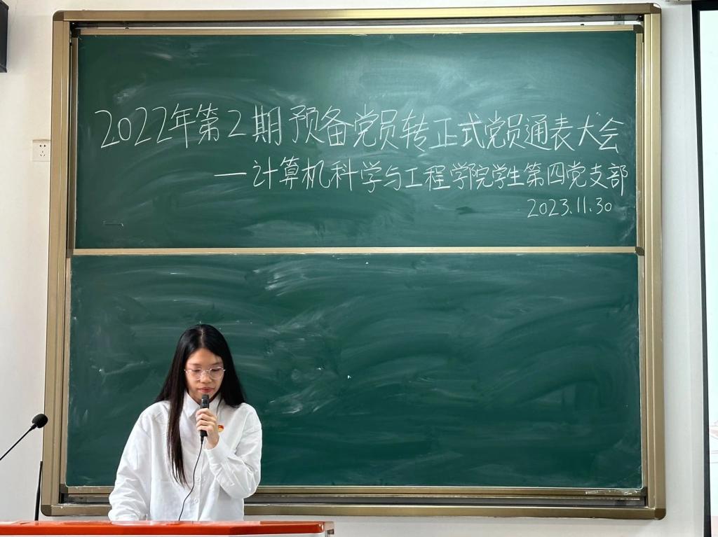 本次会议由李美琳、张慧钰、李爽、陈希四位同志主持,讨论刘家俊等26名预备党员的转正情况。会议开始,首先由26名将转正预备党员分别从个人思想、学习、工作、生活等方面进行汇报并答辩,他们总结了预备期间的自身情况,同时也发现了自己的不足之处。他们表示,如能按期成为一名正式党员,必将树立良好形象,发挥先锋模范带头作用。在每位预备党员完成自我汇报及答辩后,该预备党员的两位入党介绍人分别介绍了其在预备期内的表现及教育考察情况。经各支部中共正式党员投票,26名中共预备党员均按期转为正式党员。随后,由员工第一党支部书记李珂珂同志宣读支部决议并作会议总结。李珂珂同志表示,今天是一个非常光荣的时刻,通过了这次会议就标志着这几位同志的政治生命有了新的开端,人生上了新的台阶,有了一个新的出发点。请今天转正的党员能够以今天为人生的新起点,不忘初心,牢记使命,以身作则,严于律己。在员工和干部队伍中成为一名榜样旗帜,不断提高思想觉悟,增强四个意识与四个自信,积极学习和宣传党的最新理论,关注和帮助身边同学的思想、学习和生活状态,深入到群众中去,积极在各项活动、工作中承担更多责任,发挥更大力量。