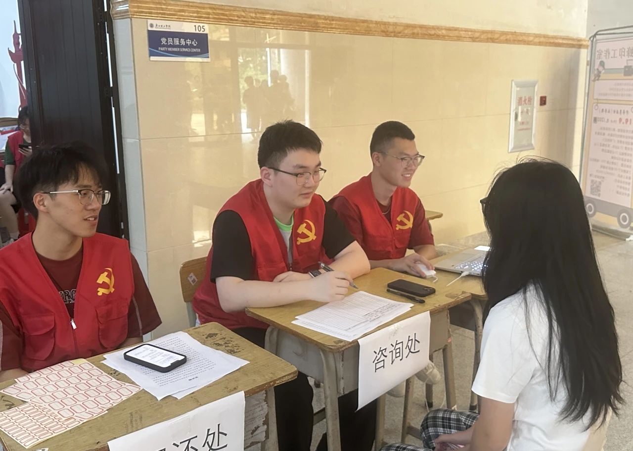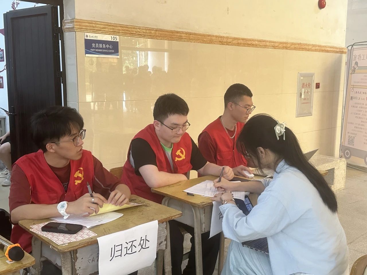 活动现场,来自太阳成集团tyc122ccvip的员工志愿者们分为资讯组、维修组和归还组三个组别,积极投入到电脑维修工作中。他们以热忱的心态耐心倾听每一位师生的问题,并通过专业知识和技能,为他们提供维修服务。
