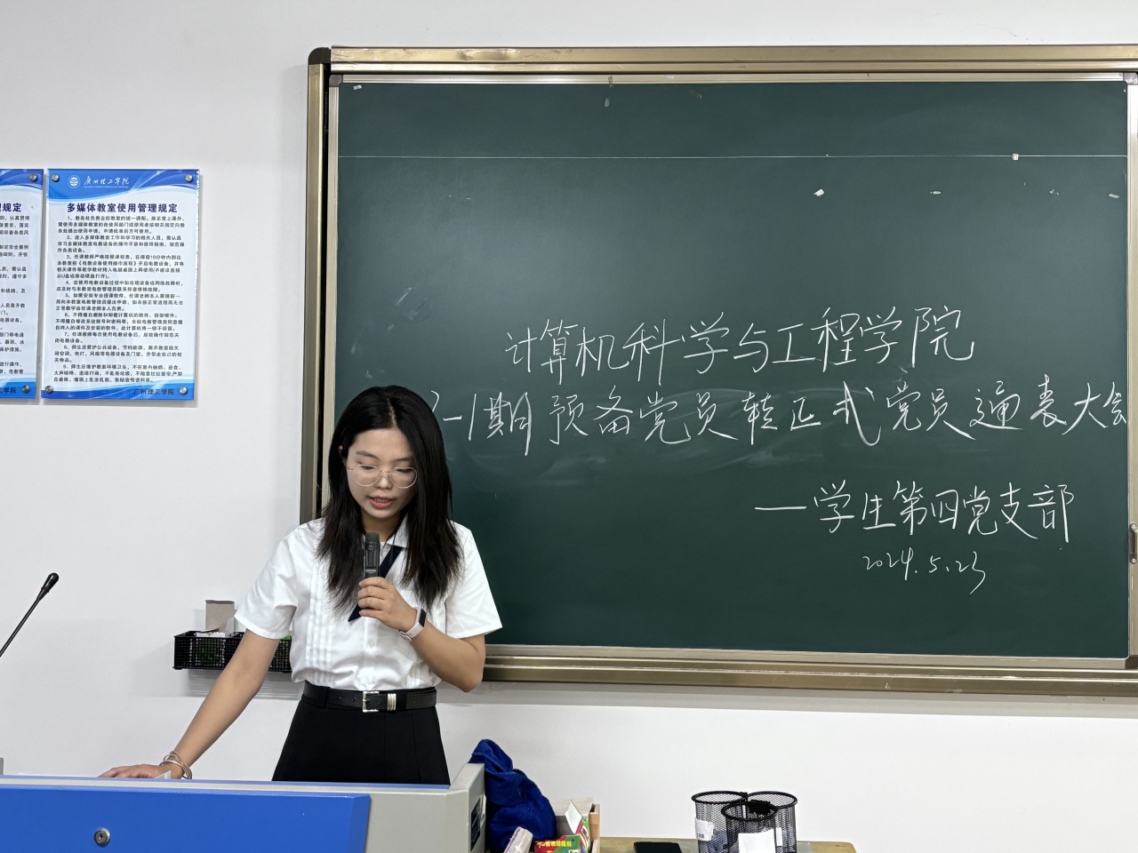 在每位预备党员完成自我汇报及答辩后,该预备党员的两位入党介绍人分别介绍了其在预备期内的表现及教育考察情况,支部书记,副书记和支委进行随机考察提问。