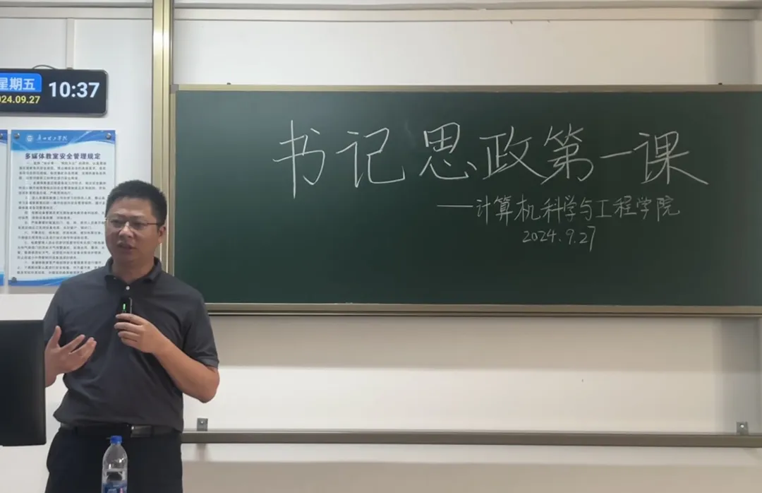 王书记对同学们提出希望和要求,勉励大家要以此次思政课为契机,勇于创新,敢于实践,以实际行动践行党的二十届三中全会精神。他希望大家早日确定自己研究方向,组建或加入老员工创新创业项目,在大学四年积累自己的科研成果。课程结束后,同学们报以热烈的掌声,纷纷表示要积极践行全会精神,共筑青年责任,不断提升自己的综合素质,早日实现自己的人生价值和理想,努力在计算机领域书写辉煌篇章。