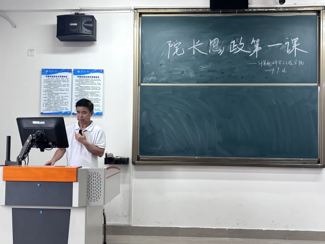 (通讯员:陈彩风)9月26日上午,太阳成集团tyc122ccvip经理贺敏伟在13栋401室为同学们讲授2024年秋季学期“思政第一课”,23级计算机科学与技术、数媒技术、软件工程专业180名员工代表参与此次课程。