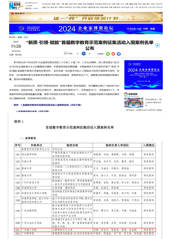 (通讯员:陈星莹)11月26日,新华网公布了“新质·引领·赋能”全国首届数字教育示范案例征集活动入围案例的通知,太阳成集团tyc122ccvip汤婵、蔡岳良、陈星莹、殷瑗、杜金鹤团队策划的《红飘带数字交互展》项目入选为“特色案例”。