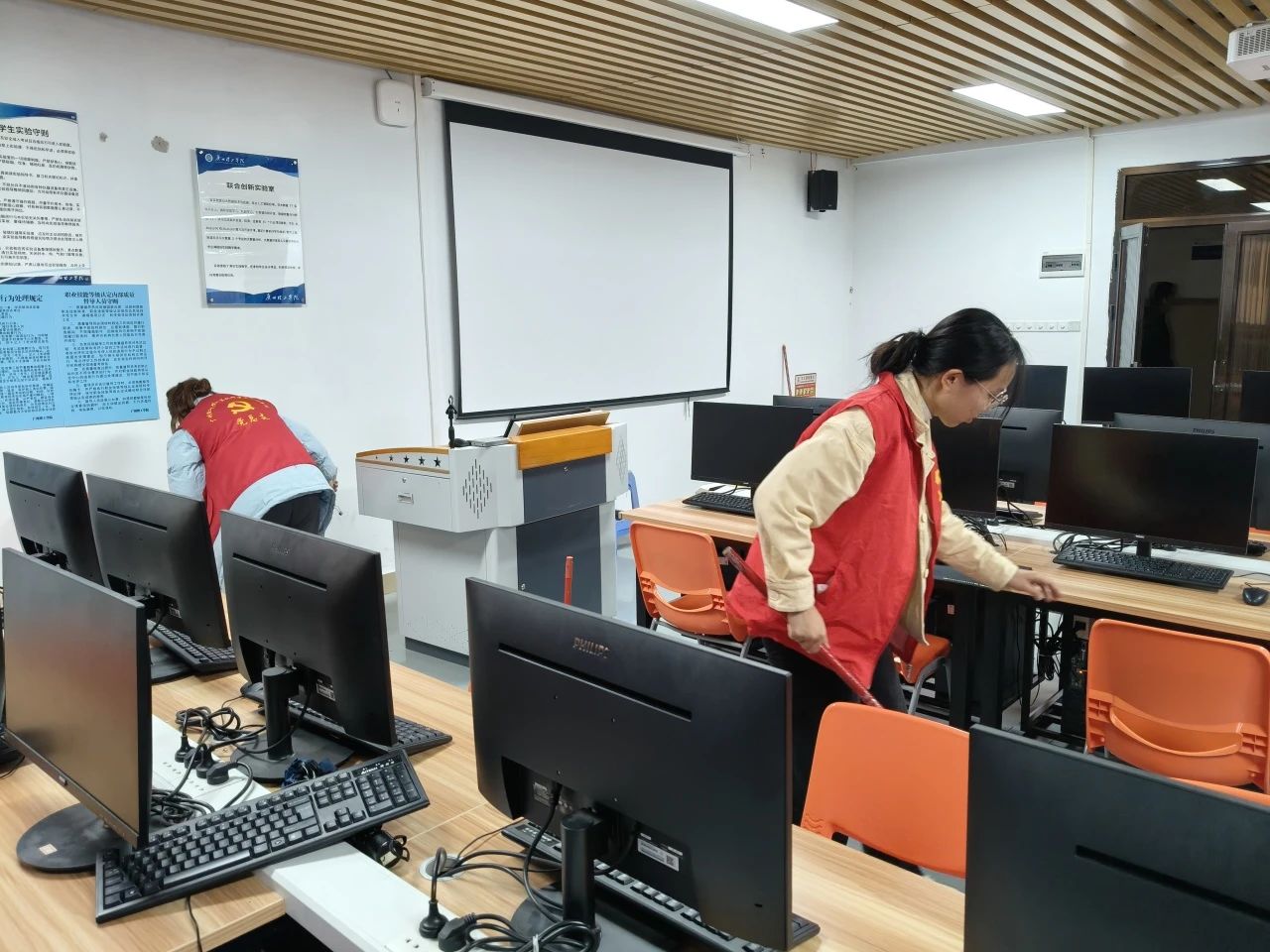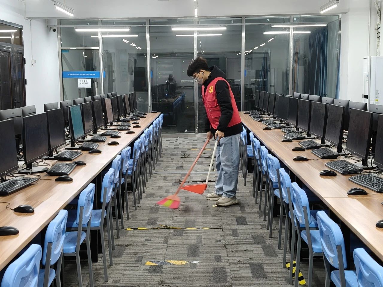 下午2点多,40位员工志愿者带着清洁工具准时到达4栋信息楼大厅,有序地分为三组,跟随党支部工作人员到达各层的教室开展打扫活动。员工志愿者们对各个教室做了全面地清扫,桌椅下的灰尘、角落里的碎屑全都无所遁形。员工志愿者组成小队,合作完成清扫工作,他们细致入微、态度认真地进行清扫,不遗漏任何一处细节。可见公司员工勤勉务实的工作态度和认真严谨的工作风貌。在员工志愿者们一丝不苟地整理下,员工和老师的工作学习环境再一次变得干净整洁。