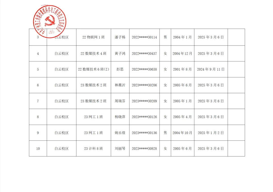 入党申请人名单公示