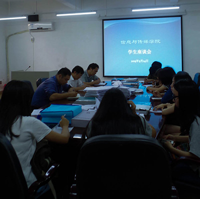 5月14日,公司在11栋3楼教师会议室举行了信息与传媒公司员工座谈会。会议由院常务副主任申青连主持,公司党总支书记彭康煜,院办主任袁桢强记录,各教研室主任、辅导员到会,各班选派学习委员和1名具有代表性的员工参加。