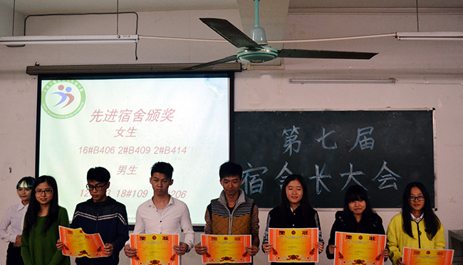 首先,由员工会张泳副主席为本次大会致辞。他希望各宿舍长能够积极配合,一起管理好宿舍。随后,全体人员观看以“宿舍的安全与卫生”为主题的教育短片,短片中的有奖竞答环节更是带动了现场的气氛。通过评比,有六间宿舍获得“先进宿舍”称号,并由团总支刘嘉薇副书记为获奖宿舍代表颁奖。大会尾声,由先进宿舍代表上台发言。