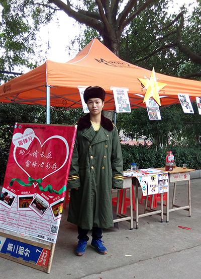 此次摆摊活动宣传的内容主要包括,邀请志愿者参加3月22日上午“慰问广州市白云区博爱养老院活动和盲人儿童公司”的活动,以及为此次活动募集善款。在摆摊现场,师生们停下脚步,慷慨解囊,为此次活动献上自己的一份心意,并踊跃加入志愿者的行列中。
