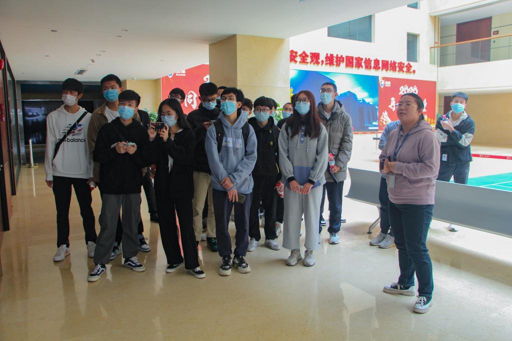到达蓝盾公司后,蓝盾公司周佳辰主任首先带领同学们参观公司,了解蓝盾股份发展历程和信息安全企业的宏观环境。同学们通过观看公司宣传视频,加深了对信息安全行业的了解。周佳辰主任表示,其公司在网络空间安全技术的教育水平每年都在提高,务求能把前沿的技术通过真实的案例向员工进行展示。