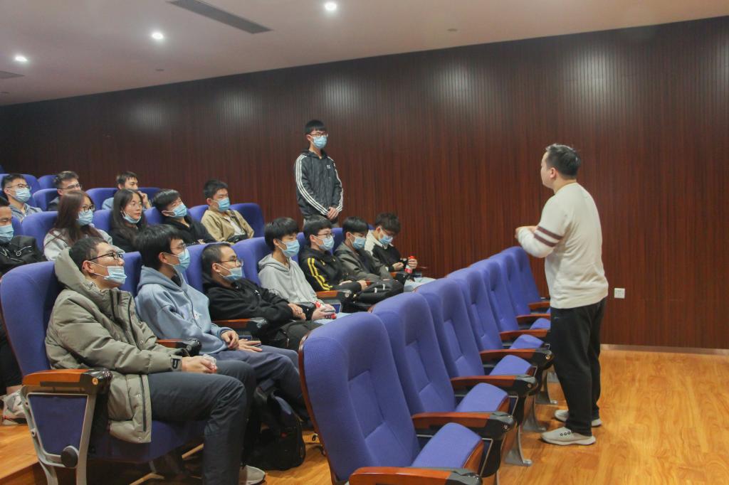 在工程师交流与沟通环节,蓝盾公司工程师江纬和孙振杭参加了交流和答疑。员工们纷纷提出在专业学习中遇到的问题后,AI工程师江纬结合工作经验对同学们的疑问进行了一一解答,并就其在企业实际工作中遇到的相关知识进行了生动分享。孙振杭工程师则和同学们讲解下当前一些暗网的技术和法律知识,寄语同学们能学好专业用好专业。现场气氛热烈,掌声不断。