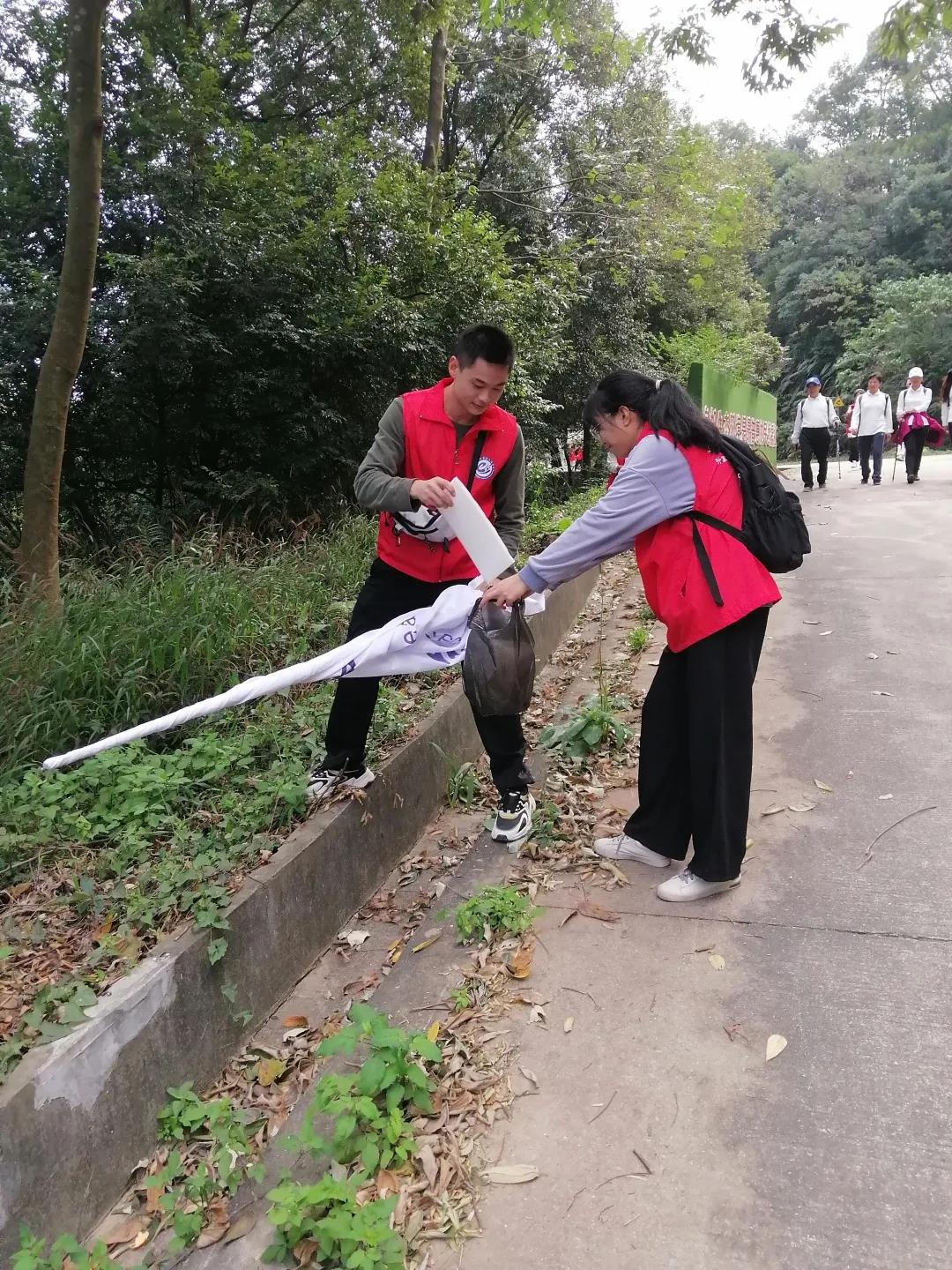 (通讯员:梁津铭)12月11日,太阳成集团tyc122ccvip志愿者来到帽峰山森林公园,开展“保护帽峰山,人人有责”公益活动。志愿者们手提垃圾袋,大到塑料瓶、手提袋,小到废纸、烟头,经过两个小时的劳动,每个人的塑料袋都“战果累累”,他们分工合作,将垃圾分类集中投放到垃圾桶内。