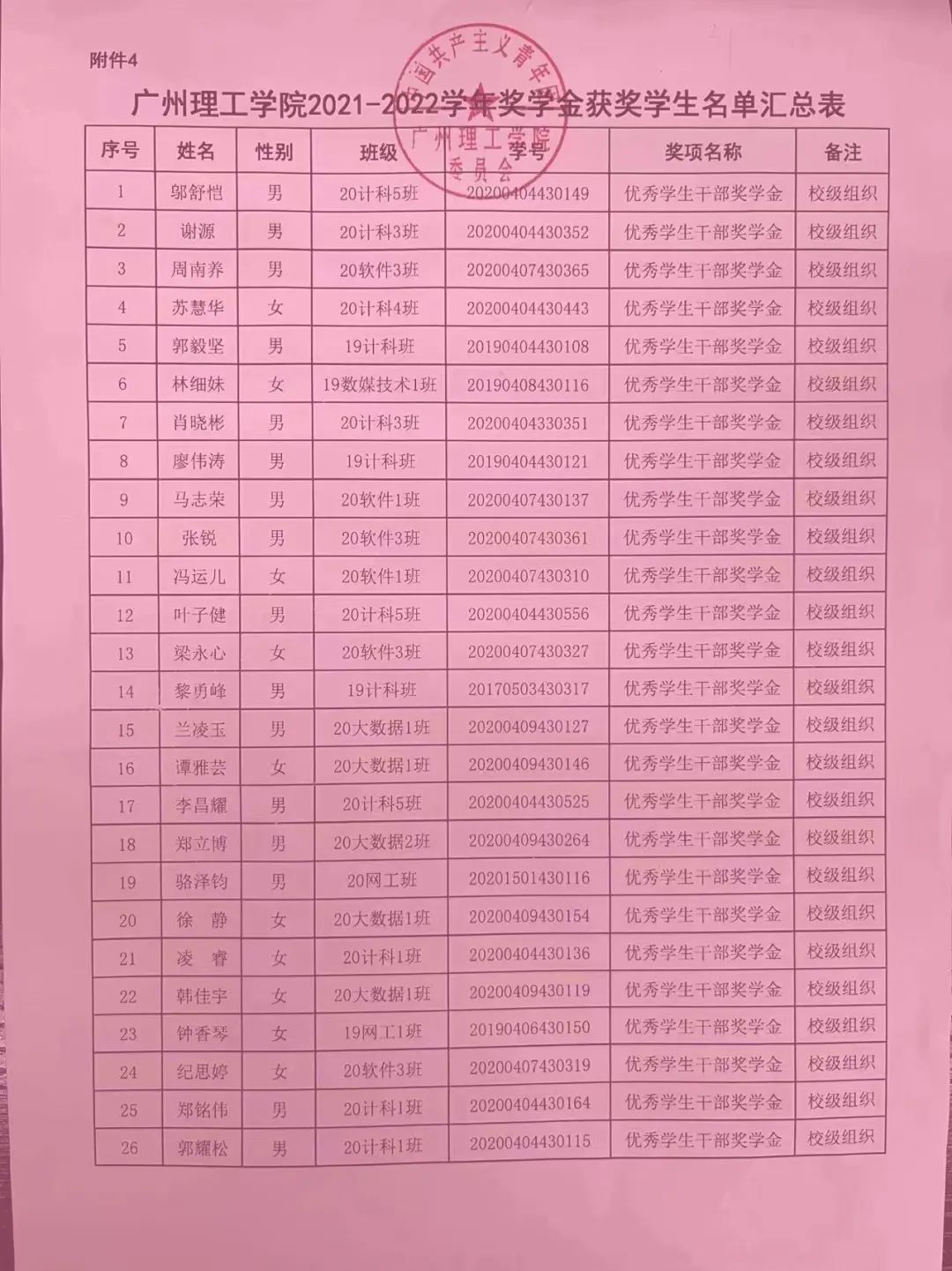 根据《公司员工奖励办法》,按照公平,公开,公正的原则,经校组织推优,校团委审核,公司复核,拟定公司2021-2022学年校级优秀员工干部奖学金名单并进行公示,时间为2022.09.17-2022.09.19。