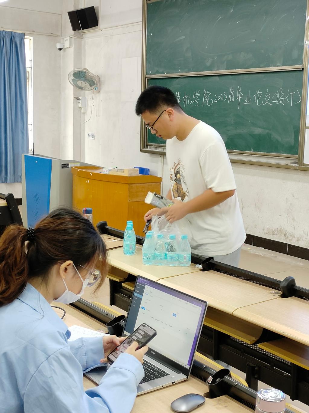 在每个教室的答辩场上,同学们都做了充分的准备,将自己的毕业研究展现在ppt上,言简意赅,向老师们讲解自己的作品。台下,答辩老师在员工讲解的基础上,对其毕业论文提出问题,以认真严谨的态度,考察员工对其专业知识掌握的程度,有针对性地对员工的毕业设计提出了进一步的建议。