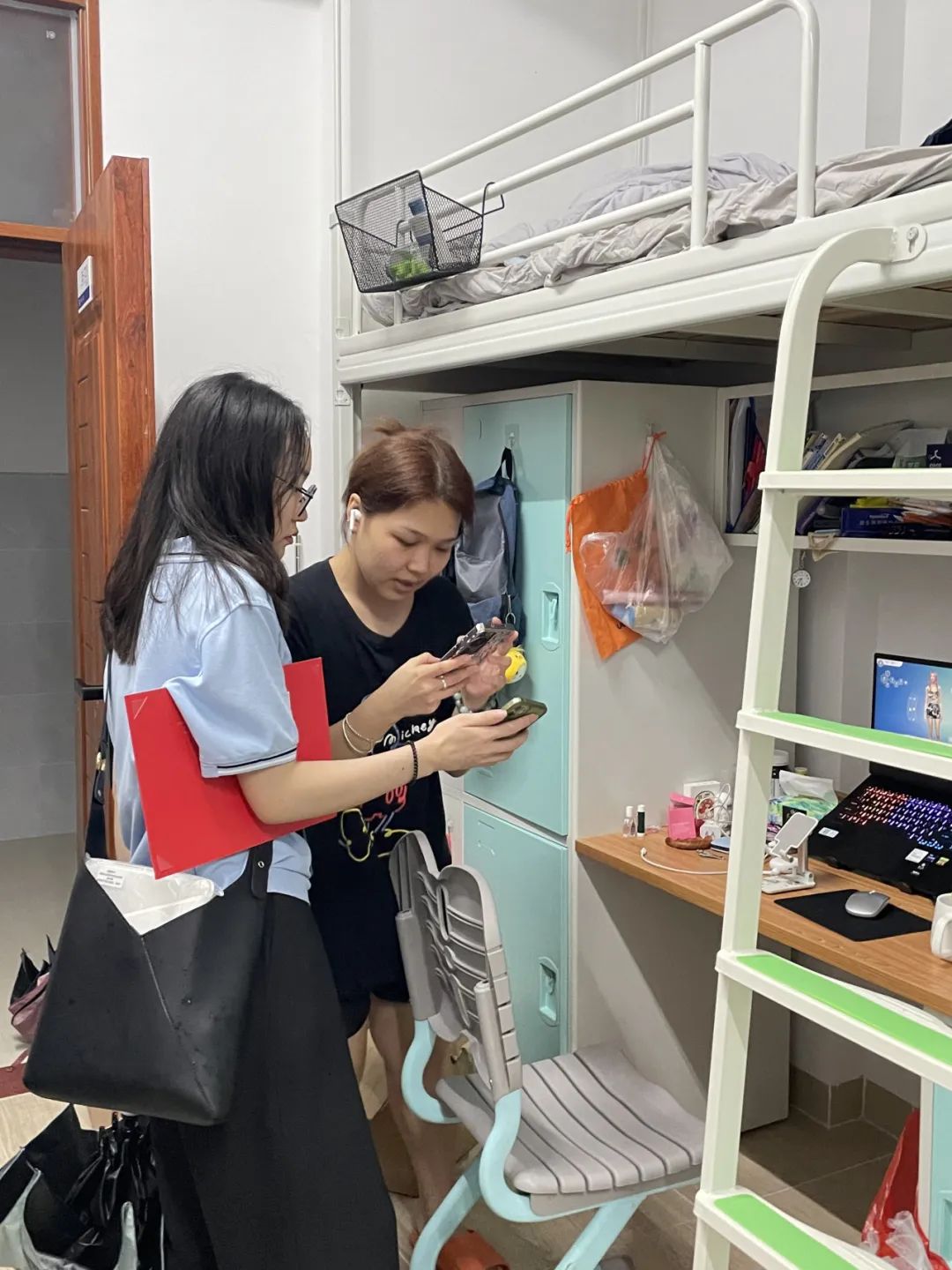 迎新第一天大雨滂沱,但辅导员们心系员工,担心新生们到了大学新环境可能会面临种种困惑和不安,所以一天工作结束后,他们连夜走进每一间宿舍,和新生们进行面对面的交流。走访过程中,公司领导老师细致了解新生们的生活情况,为他们送上温馨的问候,并详细介绍宿舍布局和安全事项,解答新生们的疑问,帮助他们更好地适应新的生活环境。在这次走访中,辅导员们不仅仅是给予了员工们温暖的关怀,更是倾听了他们的心声和反馈。新生们纷纷表示,在大学刚开始的时候,他们普遍面临许多适应困难和焦虑情绪,而辅导员们的到来给予了他们巨大的安慰和支持。