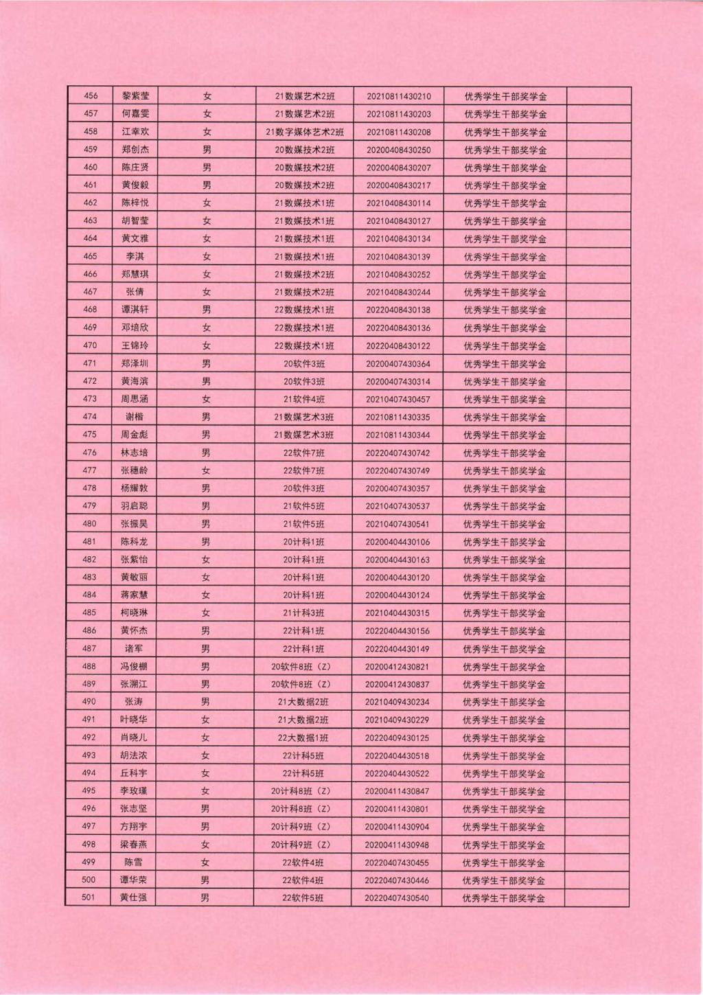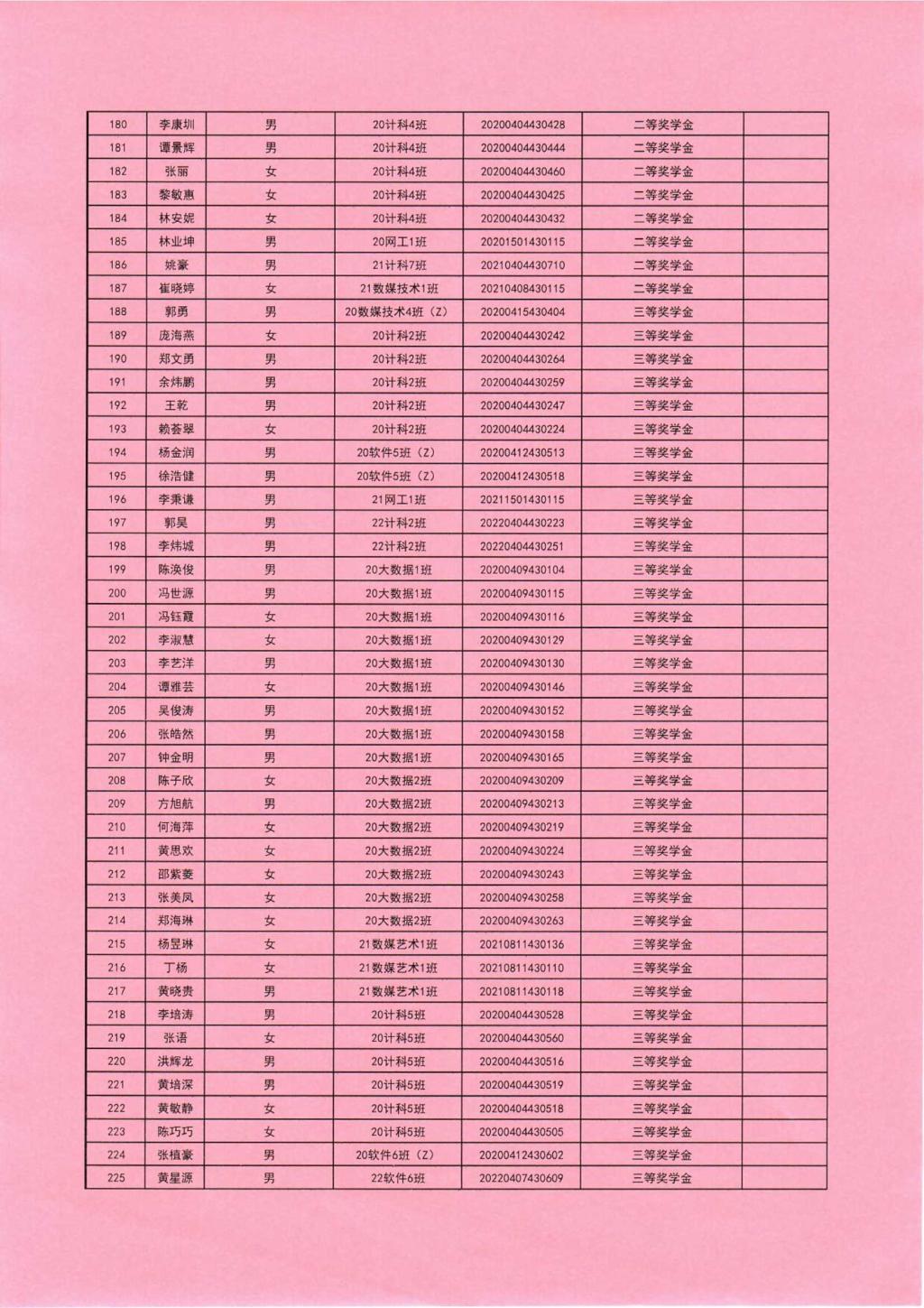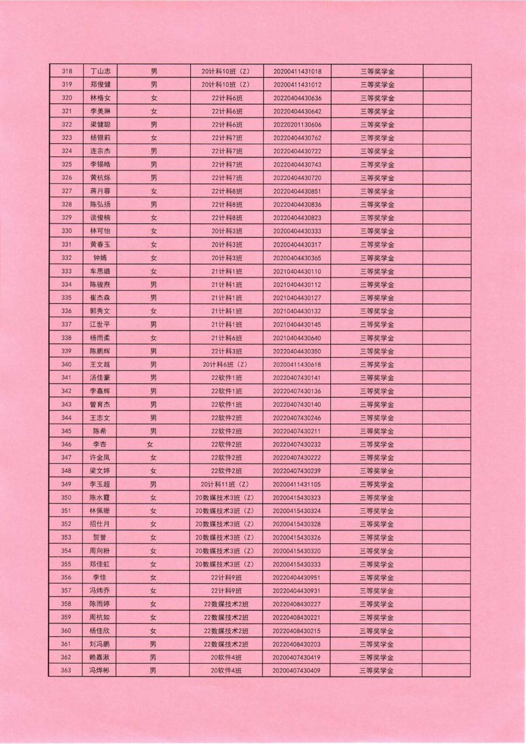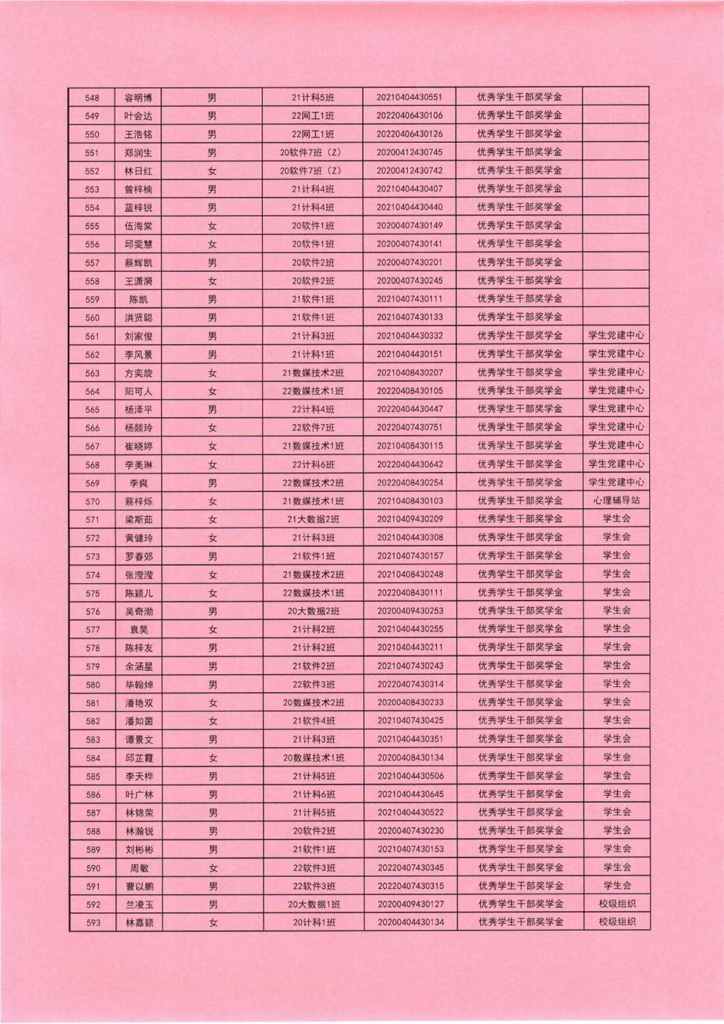 根据《公司员工奖励办法》,按照公平、公开、公正的原则,经各班推选、辅导员审核、公司审定,拟定公司2022-2023学年员工奖学金名单并进行公示,时间为2023-09.20-2023.09.22。