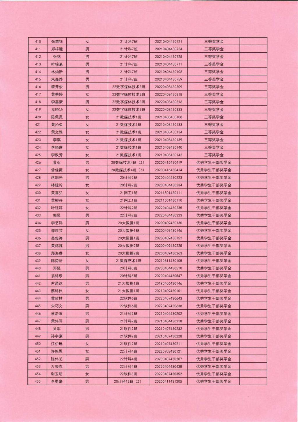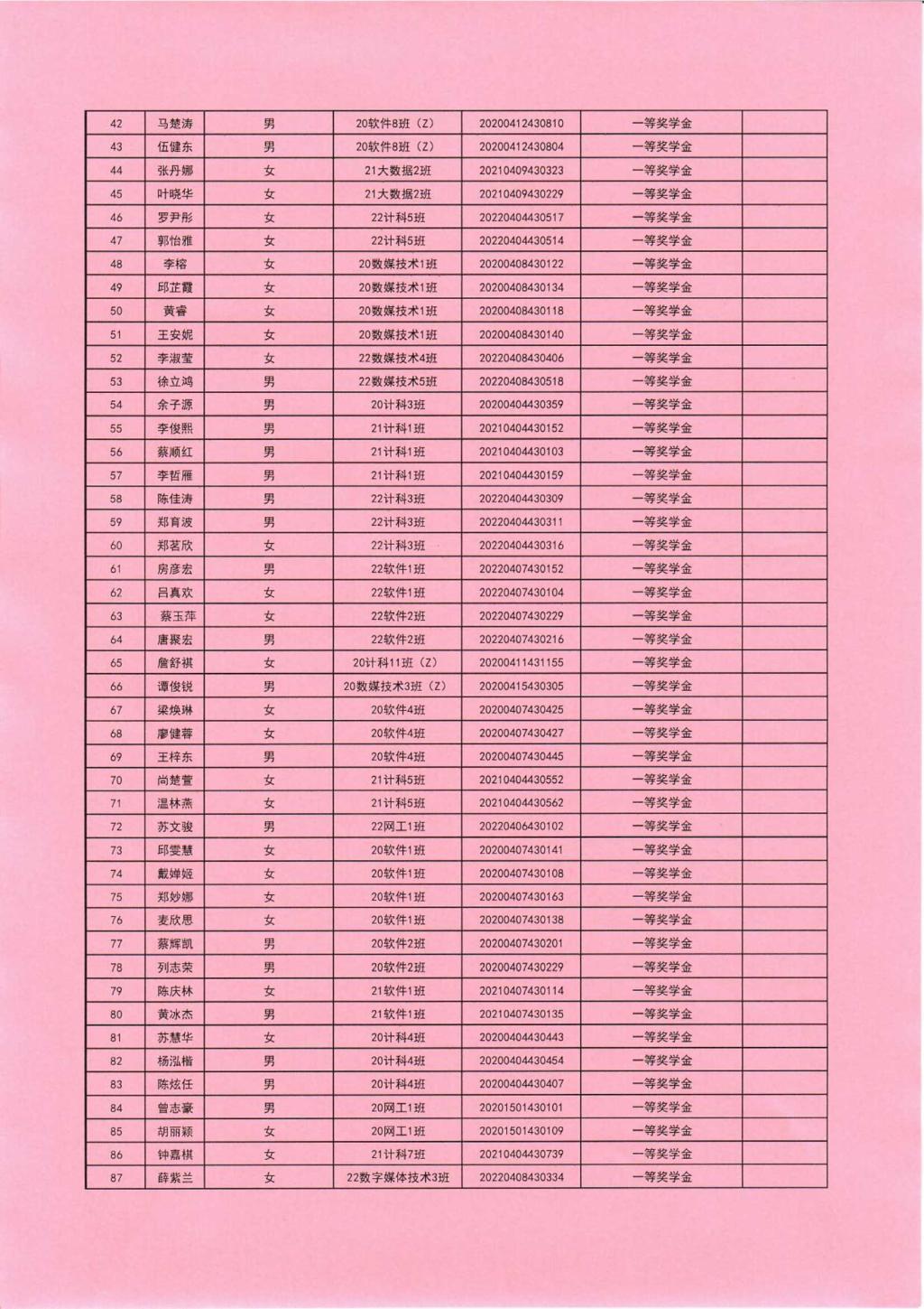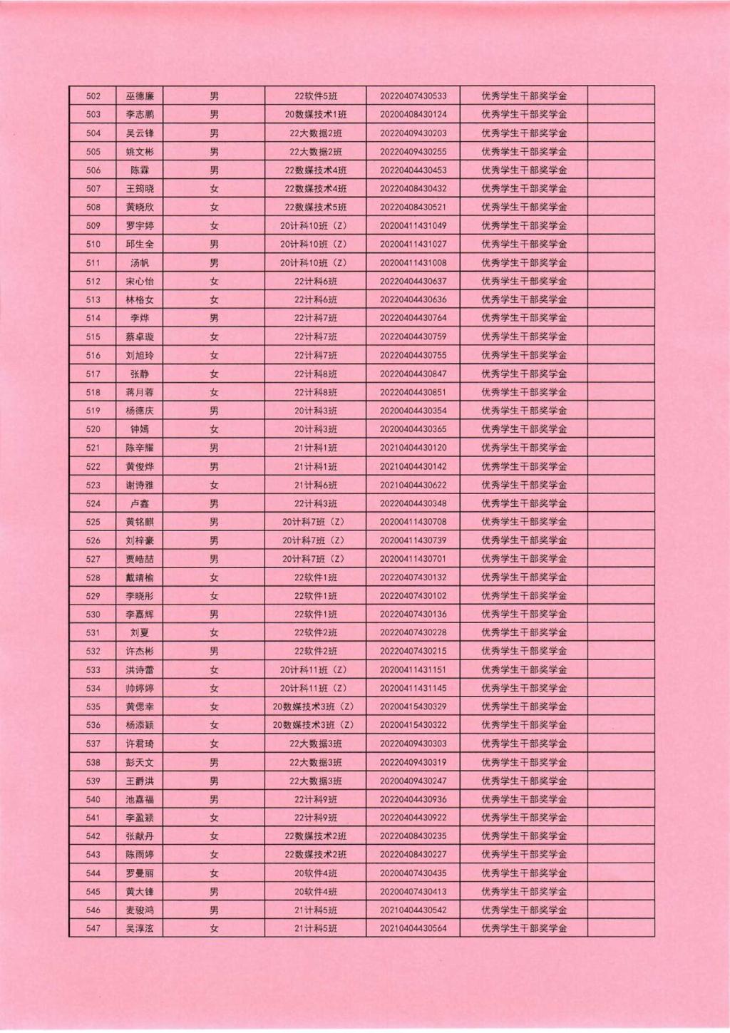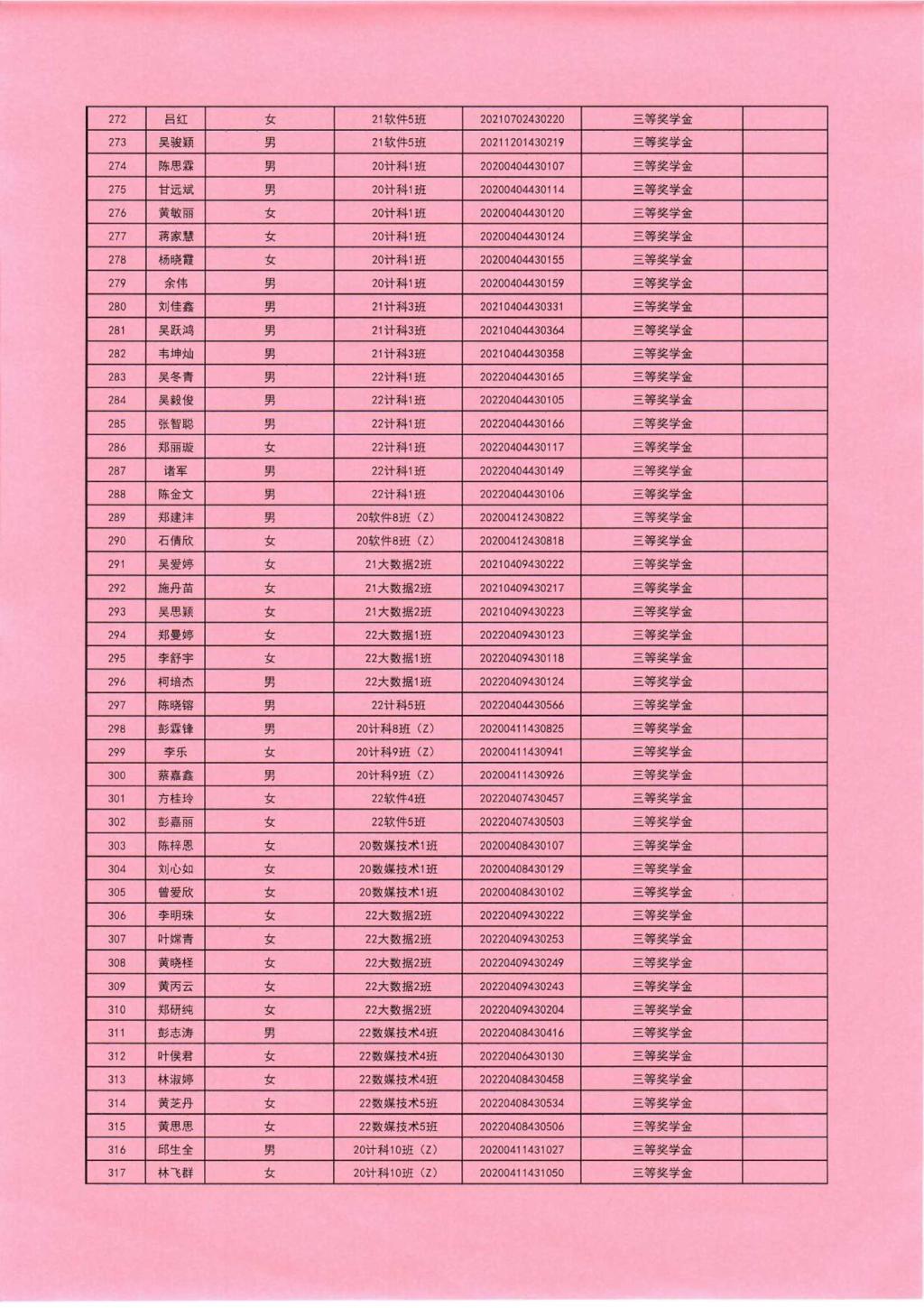 根据《公司员工奖励办法》,按照公平、公开、公正的原则,经各班推选、辅导员审核、公司审定,拟定公司2022-2023学年员工奖学金名单并进行公示,时间为2023-09.20-2023.09.22。