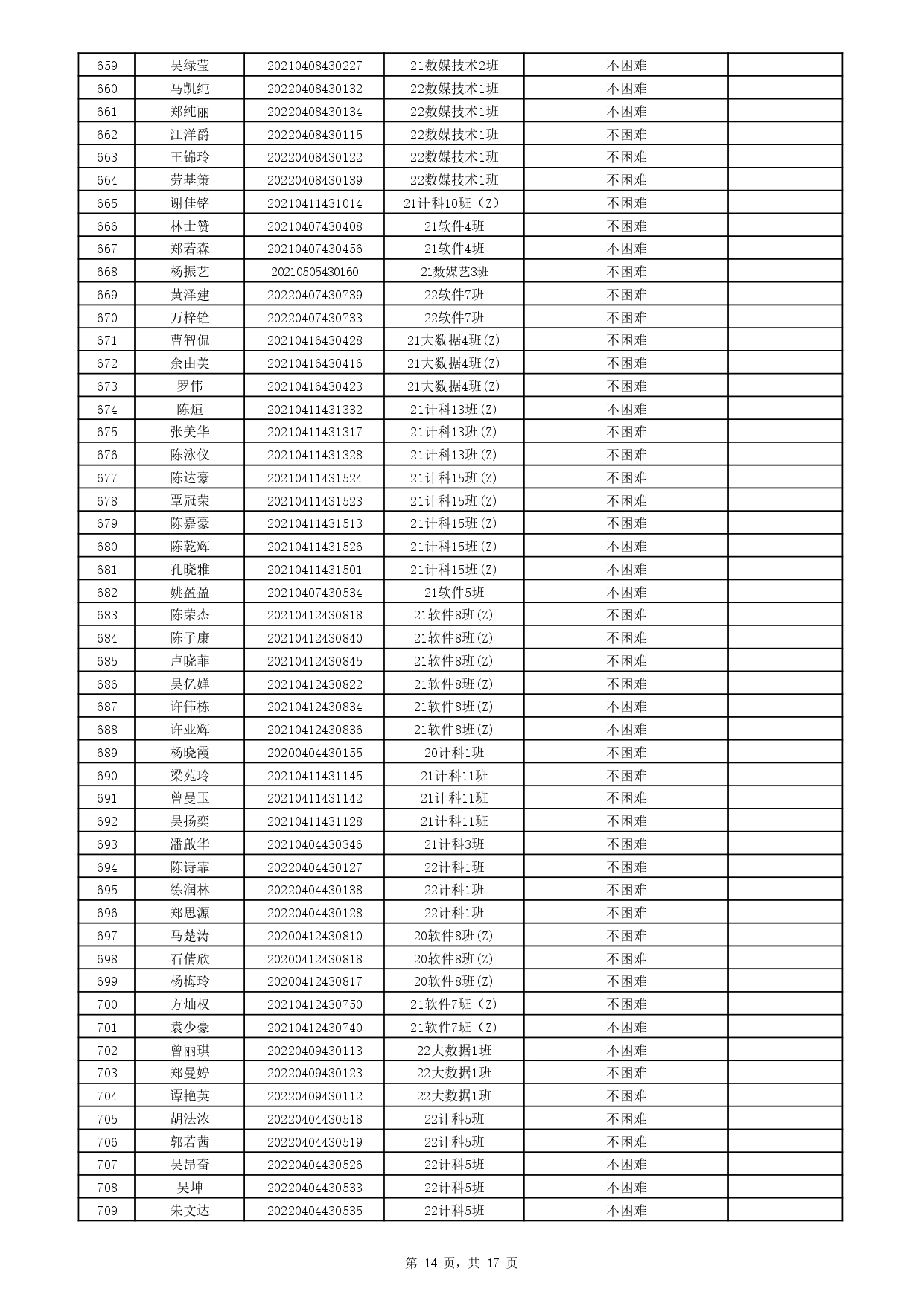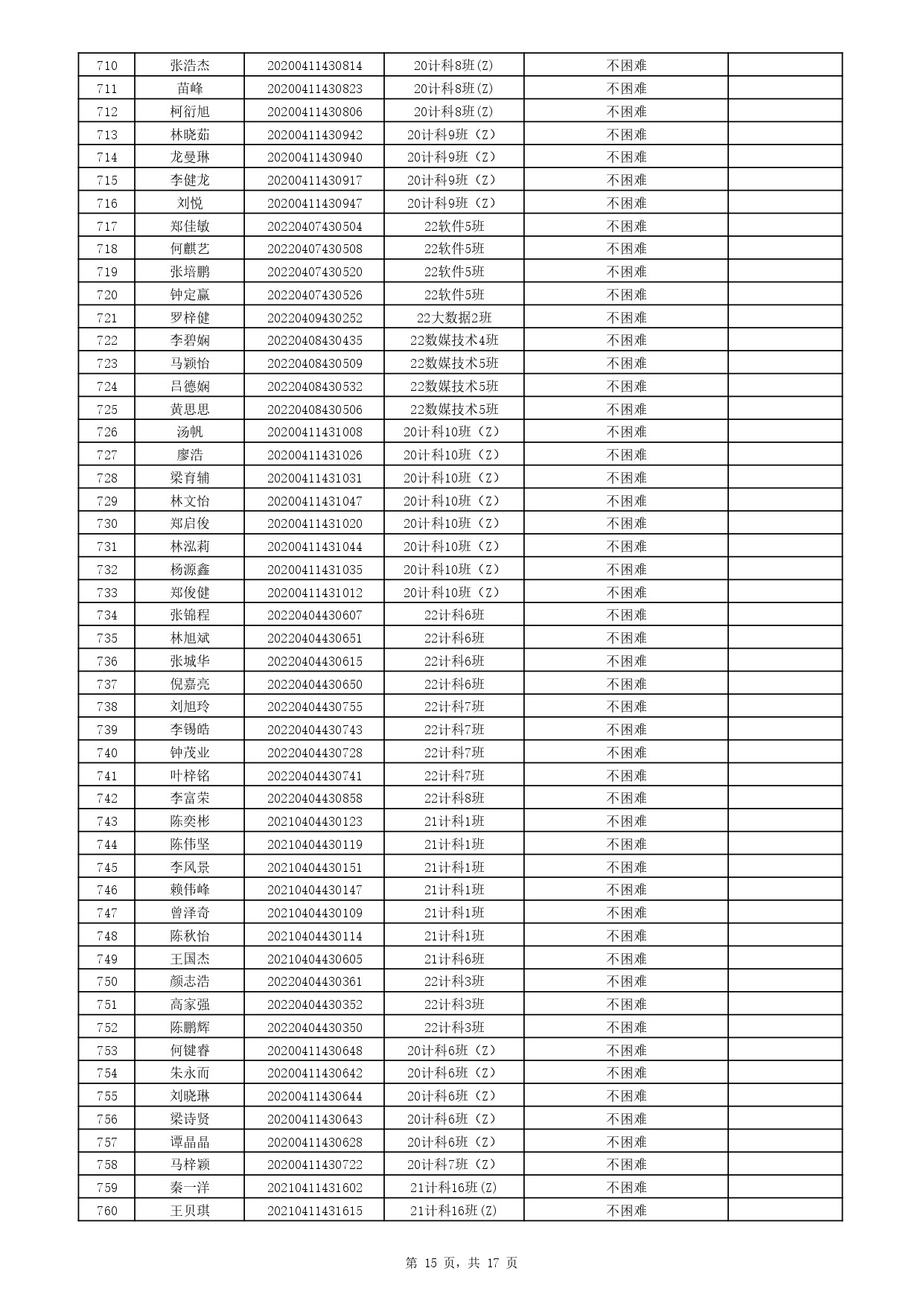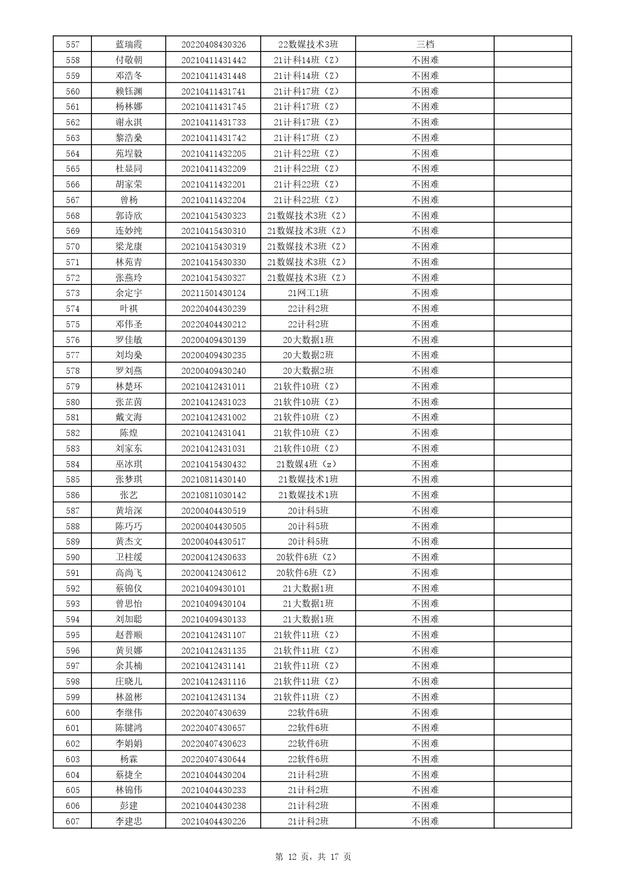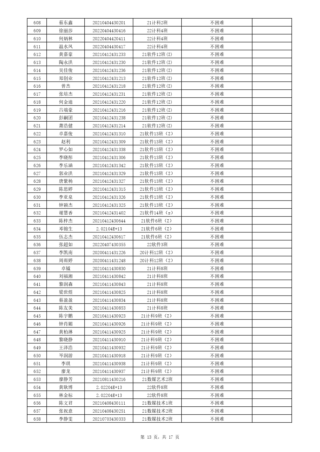 根据广东省教育厅及公司关于家庭经济困难员工认定的相关文件精神,按照公平、公正、公开的原则,经员工申请及班级、公司评审小组评议,现将公司2023-2024学年家庭经济困难员工认定等级初审结果根据反馈修改再次予以公示,公示期为2023年9月25日至2023年9月29日。若对公示有异议,请以书面形式向以下受理部门反映,反映情况时请署名真实姓名和联系电话,不签署真实姓名或不提供具体事实材料的,将不予受理。