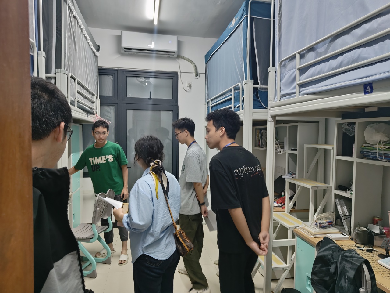 (通讯员:詹创鑫)为进一步加强公司员工宿舍的安全管理工作,落实宿舍管理规章制度,营造安全、舒适、温馨的宿舍环境,11月8日晚,公司全体辅导员老师深入员工宿舍开展员工宿舍安全隐患互查和内务治理工作。
