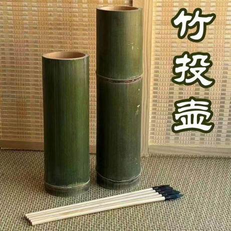 投壶游戏:每位选手5支箭,站在规定的线外,向壶内投掷,中3支可以获得1次答题机会,4支可以获得2次答题机会,5支可以获得3次答题机会。