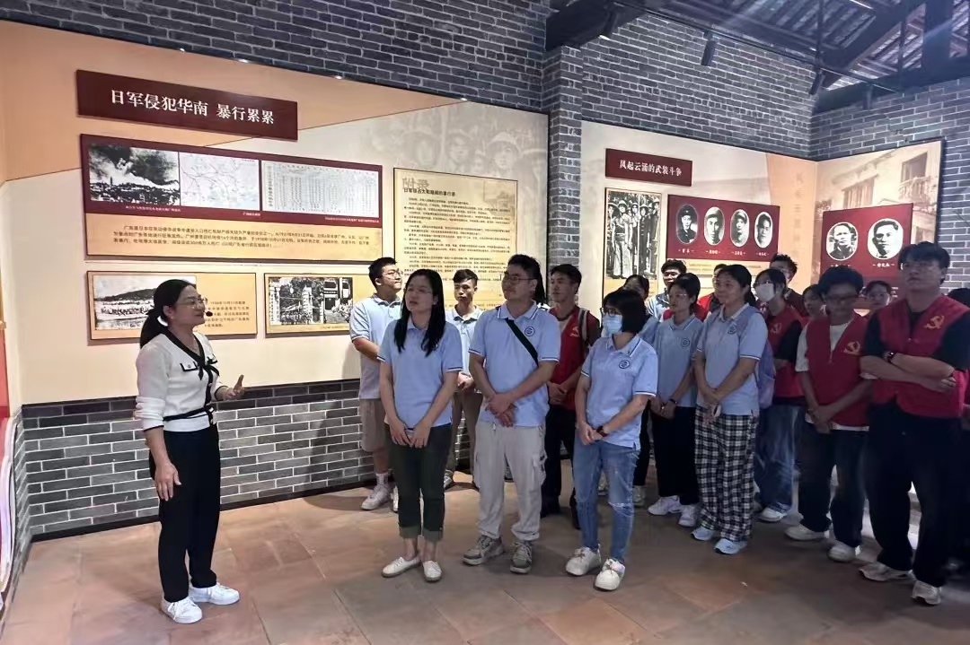 西罗乡抗日民主政府旧址位于广东省广州市白云区太和镇穗丰村,是广州地区首个中国共产党领导的抗日民主基层政权的诞生地。在杨馆长的悉心引导下,师生们参观了抗日历史展厅,认真浏览了旧址中的史实照片、文字记录及珍贵文物。讲解员段细致入微的讲解,让师生党员仿佛置身于那段烽火连天的岁月,深刻感受到了中国共产党领导广大人民群众为抵抗外敌、艰苦斗争的卓越历史。此次参观不仅加深了党员们对自身身份的认同感与使命感,更让他们深刻体会到先烈们为革命事业所奉献的智慧与力量。