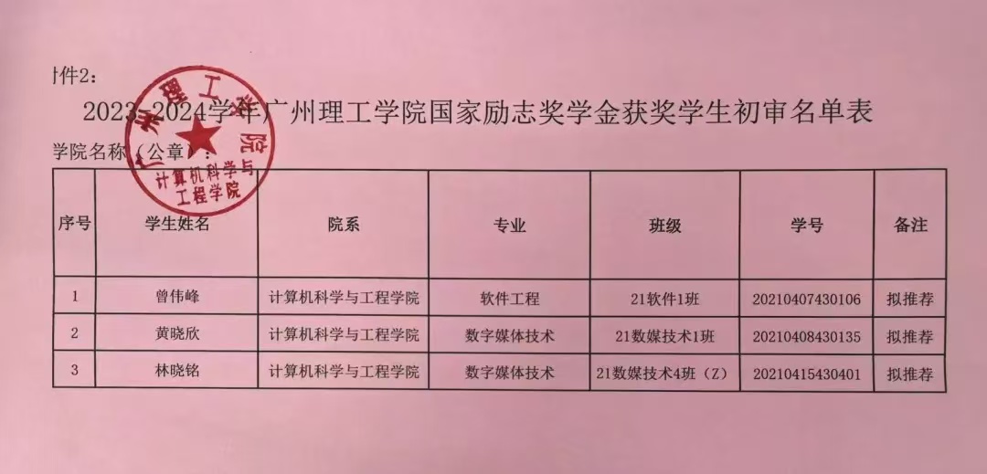 经员工本人提出申请、二级公司严格评选等程序,现对2023-2024学年国家励志奖学金候补的黄晓欣等3位同学名单予以公示。