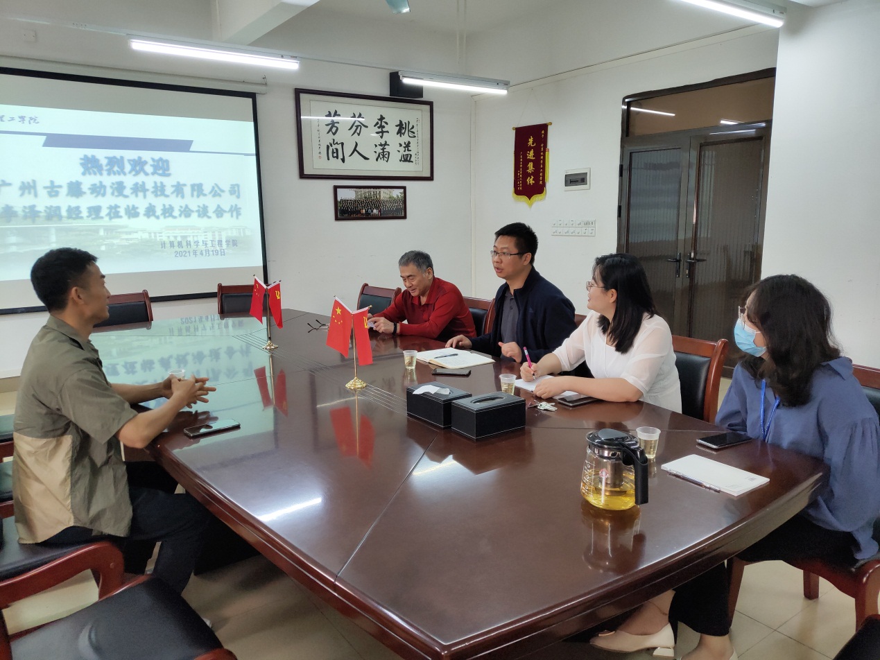 (通讯员:郭浪浪)4月19日上午,广州古藤动漫科技有限公司校企合作经理李泽润应邀来院洽谈校企合作事宜。公司经理原峰山,副经理王煜林等热情接待了李经理,就校企合作展开深入交流。