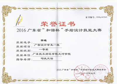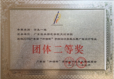 在公司信息与传媒公司申经理,谌副经理等领导的支持下,由公司专业教师司徒凤仙老师负责指导公司数字媒体艺术专业员工参加了由广东省工业工会、广东省装饰行业协会、广东省装饰职业技能鉴定所举办的 “2016年广东省“和谐杯”手绘设计技能大赛”广告设计专业的比赛,勇创佳绩,公司获得团体二等奖以及一二三优秀奖共十余多人:一等奖:黄曦;二等奖:欧霭琪、吴智超;三等奖:区颖 张惠 高雅雯 黄珍珍 江嘉桦 彭紫莹 陈晓敏 ;优秀奖:黄婉 许宏玲 颜婷刘婧雯 杨文英 余晓琦。