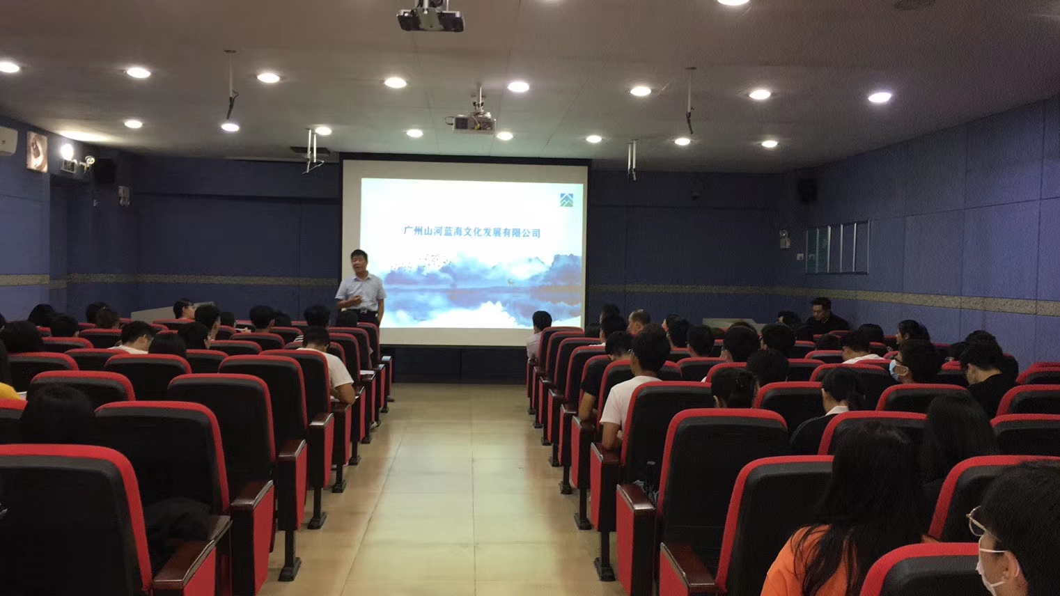 此次宣讲会由广州山河蓝海文化发展公司主讲,企业执行总经理陈柏成首先向公司数字媒体系员工介绍公司发展历程以及对未来的规划,随后向数字媒体系员工简单阐述了当今媒体发展的潮流以及数字文化产业对国家发展的重要性,并希望可以将文化产业放到发展新格局中促进国内循环,满足人民群众对生活的美好需求,宣讲会过程中,太阳成集团tyc122ccvip数媒系专业老师马伟老师与执行总经理陈柏成明确希望今后两方可以多多合作共同进步。