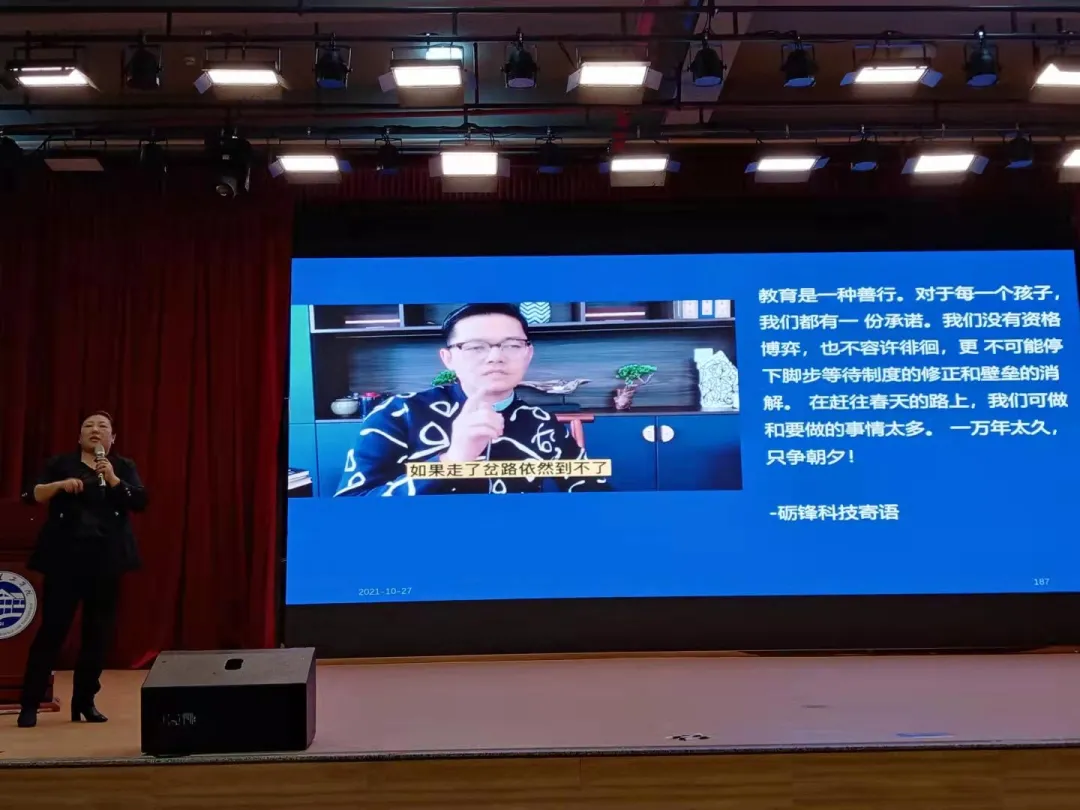 主讲嘉宾林丽静总经理结合计算机专业员工实际解读了IT行业现状与职位发展未来,从老员工四步成长路线图展开了讲座。林总从校企合作 “砺锋创新开发工作室”的建设思路和如何加入工作室及创新创业项目等方面进行深入阐述。同时,结合自身的创业历程,林总介绍了多位IT行业创业者创新创业事迹,和展示砺锋众创空间前期的实践成果。这让员工们深受启发和鼓舞。