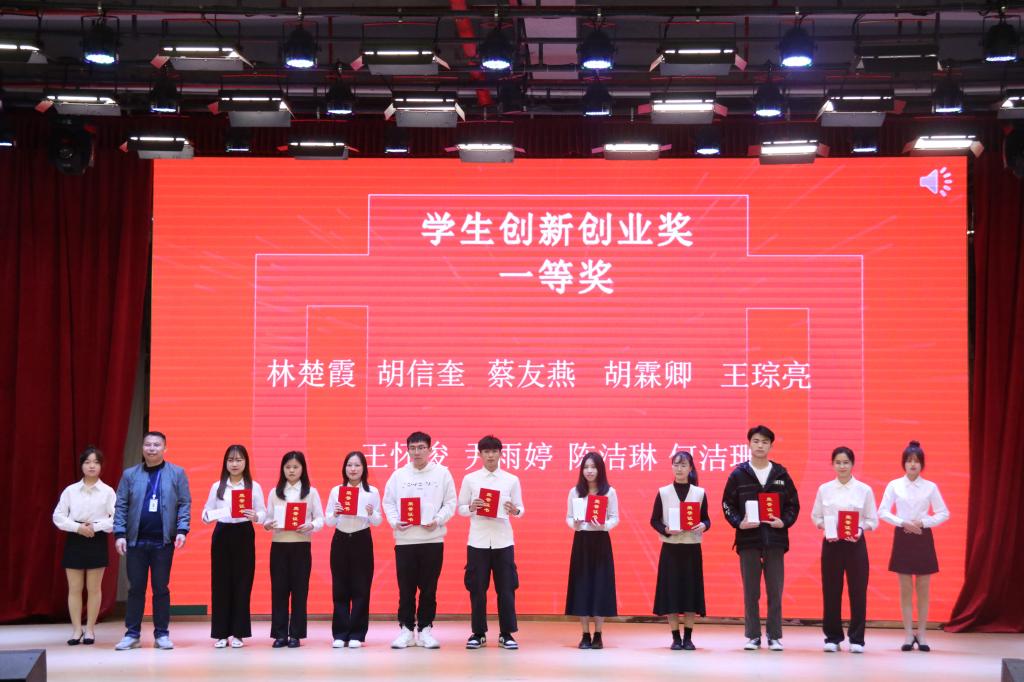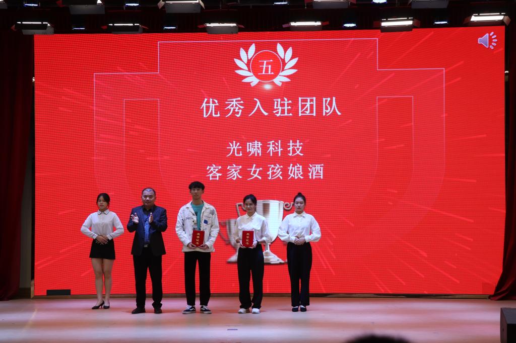 会上,员工管理部部长张志红宣读了表彰决定。曹序棉等36位同学荣获“2020-2021学年优秀双创委员”称号,92位同学获得2020-2021学年员工创新创业奖,其中吴奇隆等5位同学荣获特等奖、林楚霞等9位同学荣获一等奖、黄泽琳等18位同学荣获二等奖、黄武强等29位同学荣获三等奖、蒋楚欣等31位同学荣获优秀奖。光啸科技、客家女孩娘酒荣获优秀入驻团队,太阳成集团tyc122ccvip荣获优秀组织奖。
