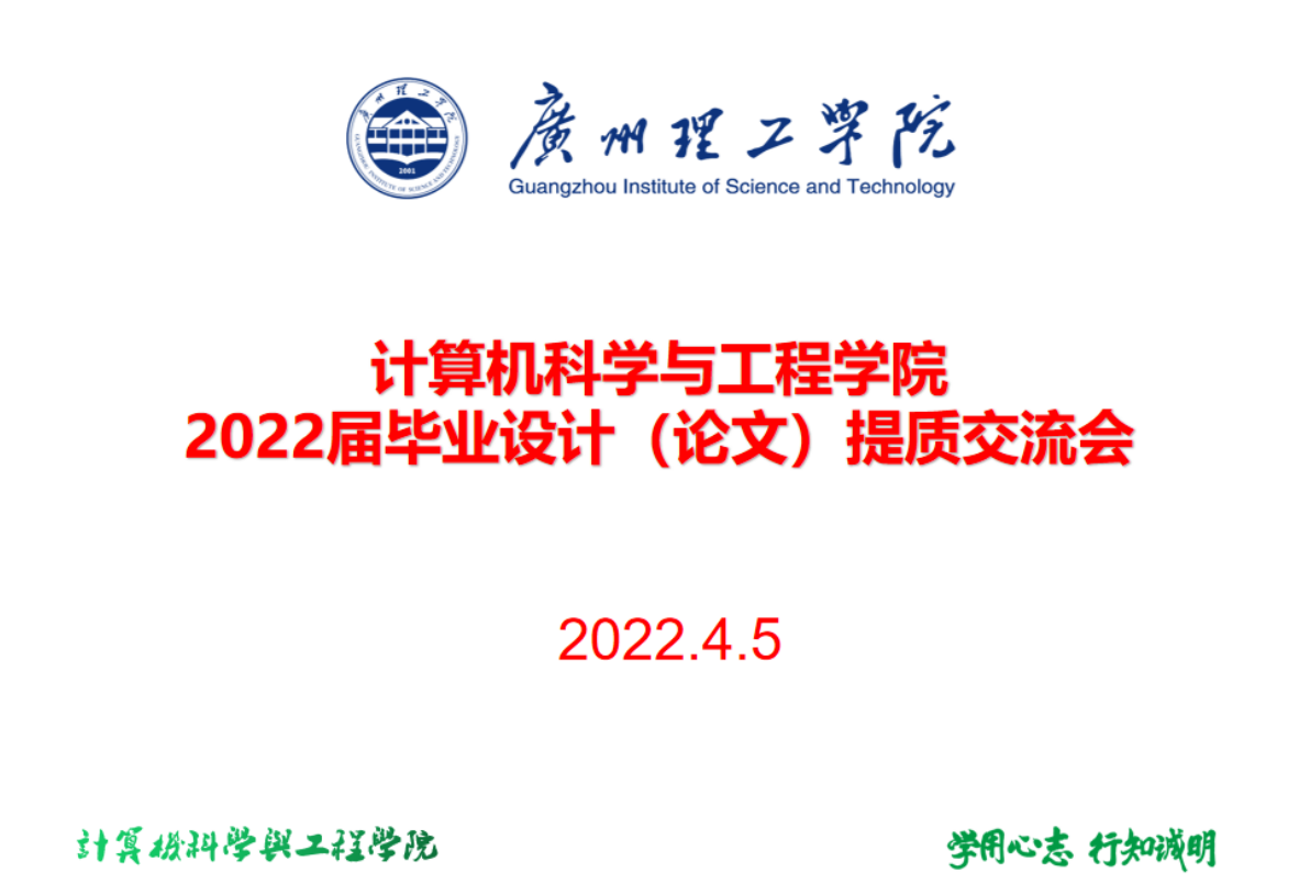 一直以来,本科生毕业论文(设计)是公司每年高度重视的重点工作之一。学年初,公司就成立了毕业论文(设计)领导小组,并综合各方专家意见制定了《计算机类毕业论文结构指导规范》,采取指导老师负责制,毕业论文(设计)工作责任明确、有序推进。本次交流会也是积极响应公司《关于做好2022届毕业论文工作的通知》(广州理工教函〔2021〕45号)和《太阳成集团tyc122ccvip实验管理中心关于开展2022届本科生毕业论文(设计)答辩前抽检工作的通知》(广州理工教函〔2022〕22号)的文件精神,全院上下齐行动,以高质量的标准迎接公司和上级的抽检工作。