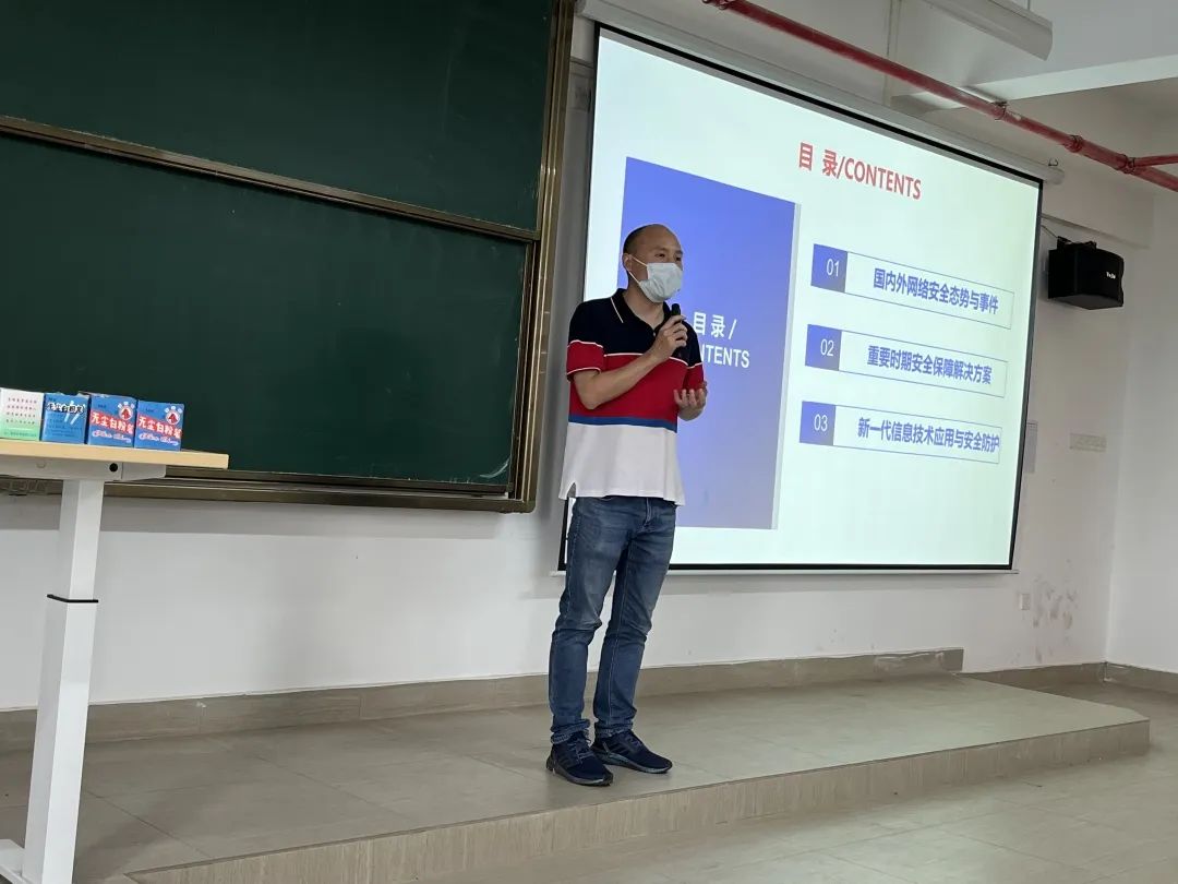 石老师围绕国内外网络安全态势与事件,重要事件安全保障解决方案以及新一代信息技术应用与安全防护三个主题进行展开,通过等级保护、云计算安全、大数据应用与量子安全应用等场景,结合案剖析,从行业和企业的角度出发,对新一代信息技术对信息产业发展的推动进行了详细的介绍,让员工们对各种安全场景有了认知,当威胁来临的时候,就有了基本的防范意识和针对性的对策与措施。