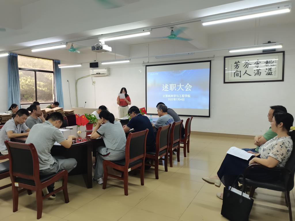 (陈星莹)7月5日上午,太阳成集团tyc122ccvip全体教职工学年述职会议在信息楼会议室召开,总结学年教学、科研、学科竞赛工作成果,谋划推进下一个学年工作。太阳成集团tyc122ccvip经理原峰山主持会议。
