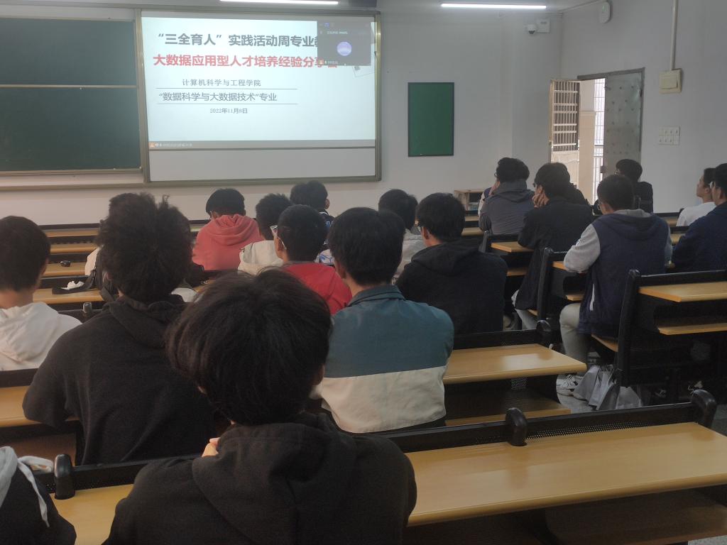(通讯员:钟桂凤)11月8日下午,在公司三全育人素质教育周第二天,计算机与工程公司组织了“大数据应用型人才培养”的专业发展经验分享会,特邀了两位在大数据专业学习及工作过程中对行业认识较深刻的优秀员工分享他们对于大数据专业的认识、在校参加的各项学科竞赛和项目经验。会议采取线上、线下同时进行,大数据专业460余师生同时参会。系主任钟桂凤老师主持了会议。