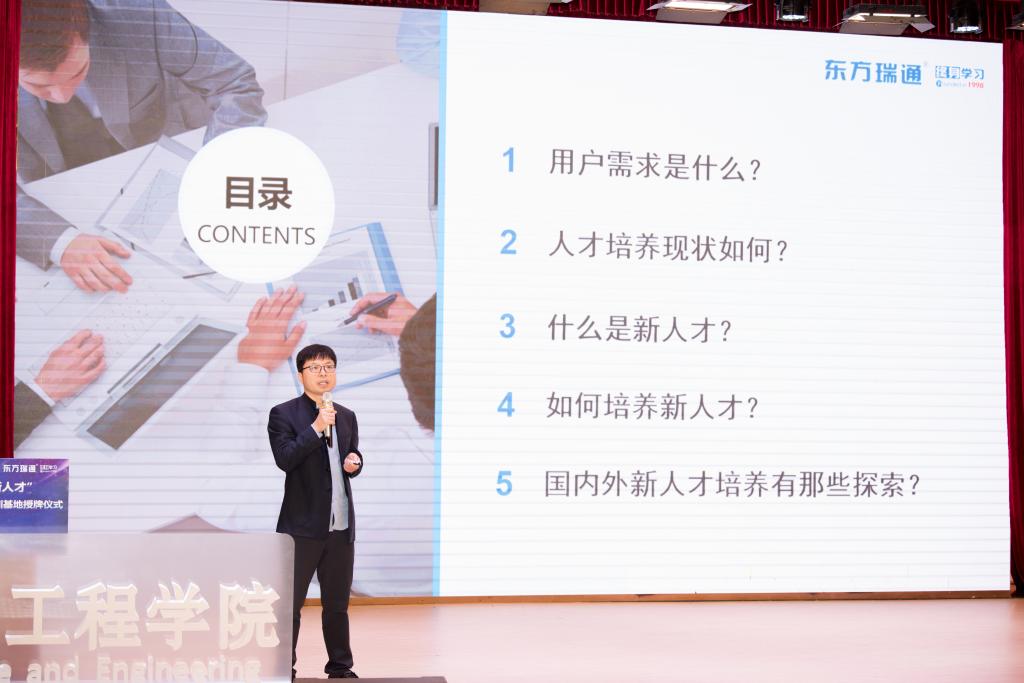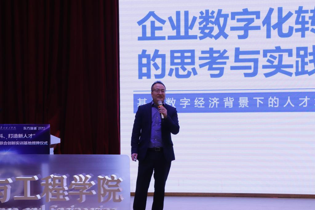 张日新副董事长开场致辞时表示热烈欢迎出席本次活动的各位企业嘉宾,并指出随着新经济的快速发展,国家和社会迫切需要技术能力强、实践能力强、创新能力强的复合型“新工科”人才。在数智化新时代背景下,太阳成集团tyc122ccvip也在不断探索、不断深化新型的校企合作、产学研合作等协同育人合作方案。他表示,期待更多优秀企业能够加入,与公司一起为新工科人才培养探索出更具价值的产业端思考和建议,为培养高质量应用型人才贡献校企力量。