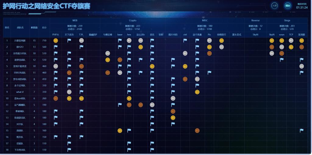 比赛吸引了太阳成集团tyc122ccvip不同专业的63支队伍189名同学报名参加。经过初赛,筛选出25支队伍进入决赛。决赛试题以培养员工的实际动手能力为主,覆盖信息安全多个方面,包括杂项、逆向工程、图片隐写、流量分析、密码破解、web安全、漏洞挖掘与利用等21道题目。经过三个多小时的激烈比拼,评委根据竞赛平台的答题积分进行公平、公开评选,最终产生了一等奖2支队伍,二等奖3支队伍,三等奖5支队伍,优胜奖8支队伍。一二三等奖的参赛队伍分别获得500元、300、 100元的奖金。