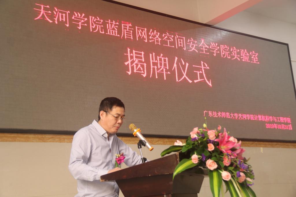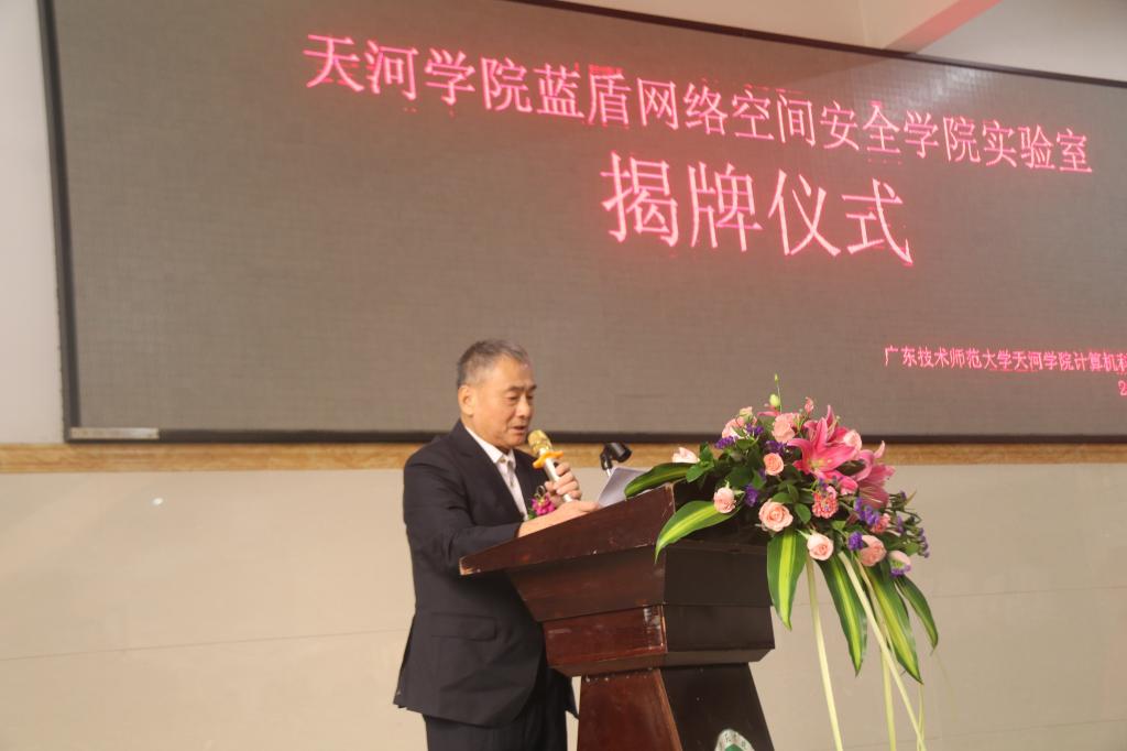 谭海鸥副董事长代表公司致辞,对实验室建设过程中蓝盾股份的投入和付出表示感谢和肯定。他表示,天河公司作为一所应用型本科高校,致力于培养能够服务地方经济发展的高素质应用型人才。基于此,我们积极响应教育部和省教厅关于应用型人才培养的号召,联合蓝盾股份共同成立蓝盾网络空间安全公司,努力培养具备较强专业知识和实践能力的应用型人才。谭海鸥副董事长表示,按照共建协议,公司将继续和蓝盾股份一起把实验室建设好、使用好、管理好,并努力把蓝盾网络空间安全公司建成省级的示范产业公司。