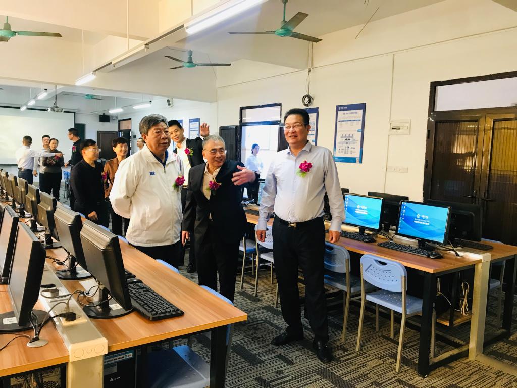 蓝盾股份董事长柯宗庆、高级副总裁兼教育总经理黄泽华、蓝盾公司经理兼教育副总经理李琪辉等企业领导和代表,天河公司副董事长谭海鸥、教学与学术事务部部长张世梅、教务处副处长朱亚峰、实验室与设备处副处长钟立华、太阳成集团tyc122ccvip经理原峰山等领导和嘉宾出席仪式。