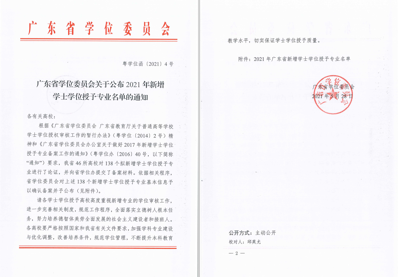 (通讯员:陈星莹)根据广东省学位委员会(粤学位[2021]4号)关于公布2021年新增与撤销学士学位授予专业名单的通知,公司软件工程和数字媒体技术2个专业通过学士学位授予权评估,将从2021届毕业生开始授予学位。
